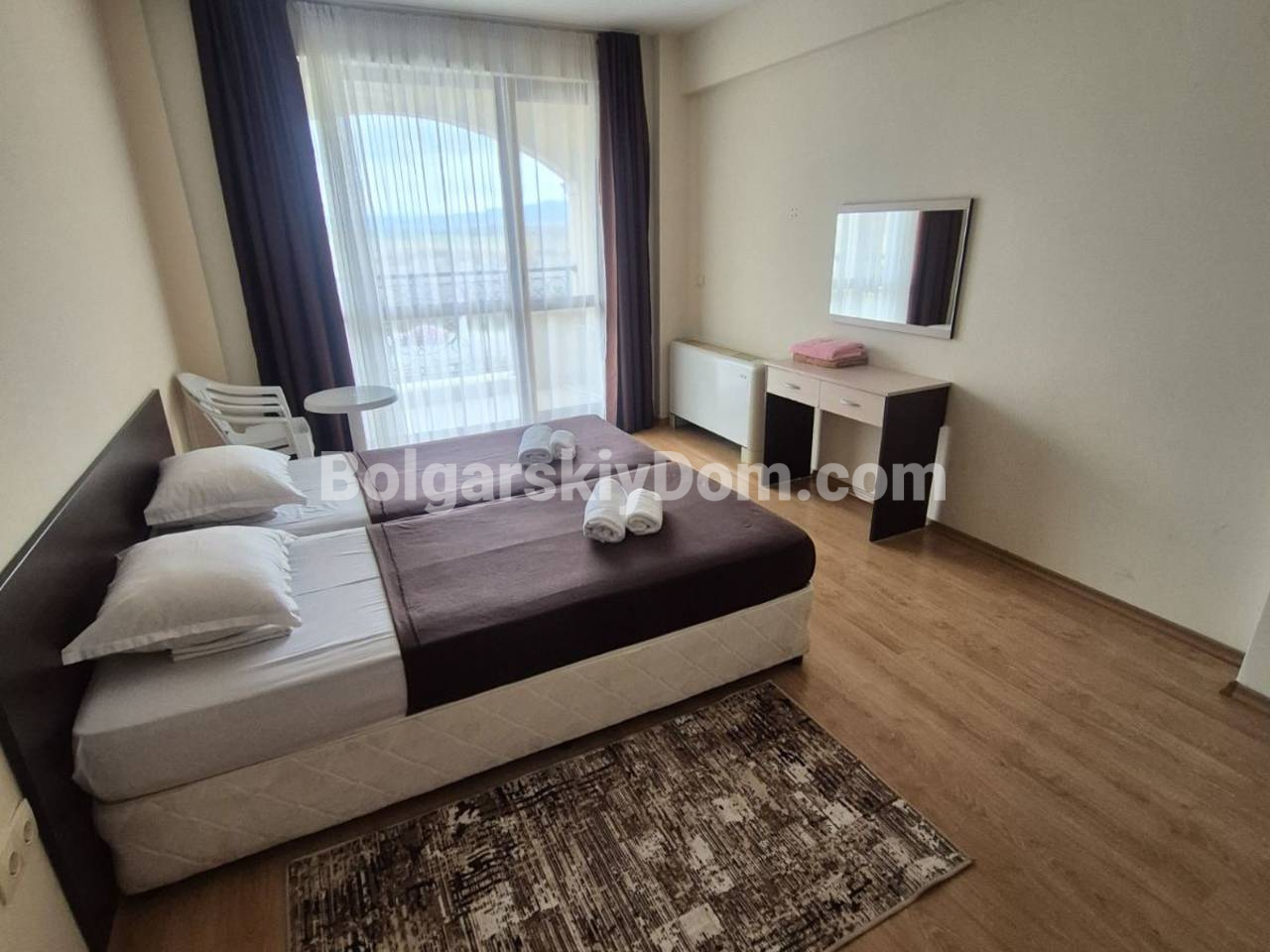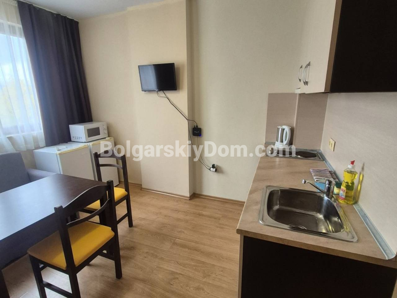 Каталог обновлен ликвидной новинкой! Команда Болгарского Дома представляет ликвидный вариант в центральной части Солнечного Берега - двухкомнатную квартиру в комплексе Сезоны 3. Объект площадью 60 кв.м. расположен на третьем этаже и ориентирован на северо-запад, что обеспечивает приятную прохладу в жаркие летние дни. Планировка включает функциональный коридор, светлую гостиную с кухонной зоной, изолированную спальню и террасу для отдыха. Жилье полностью укомплектовано мебелью и бытовой техникой, находится в отличном состоянии и готово принять новых владельцев сразу после сделки.