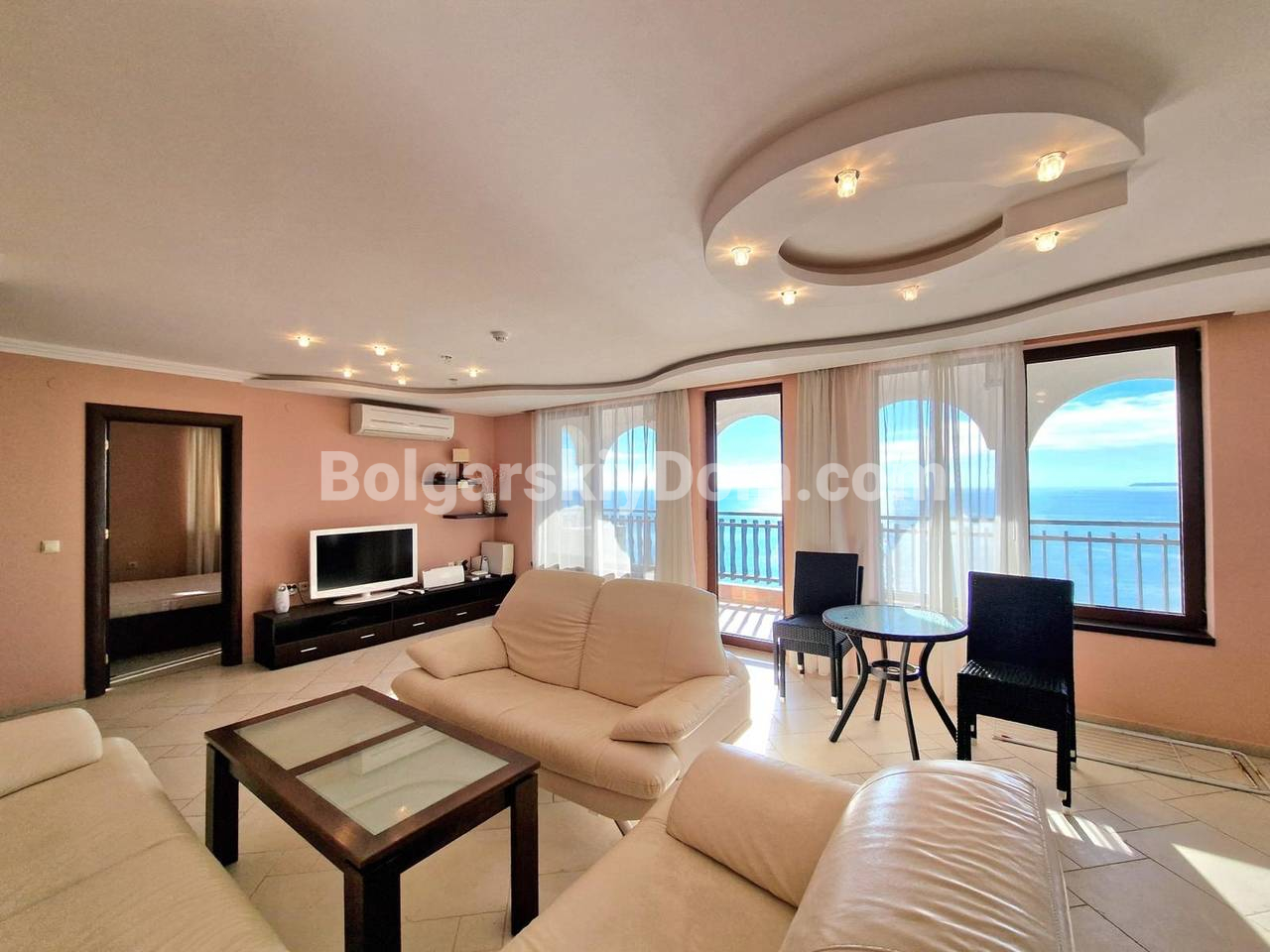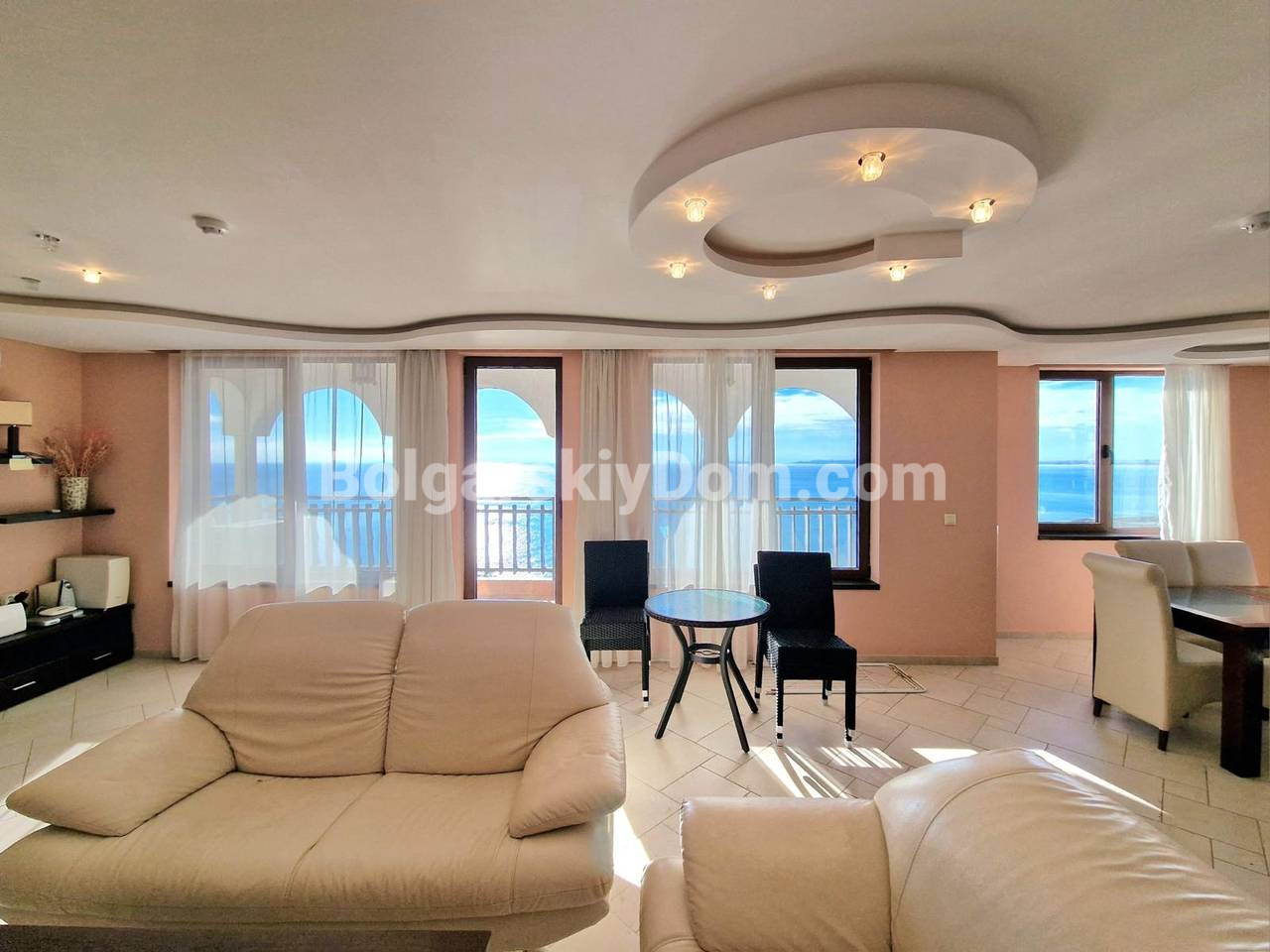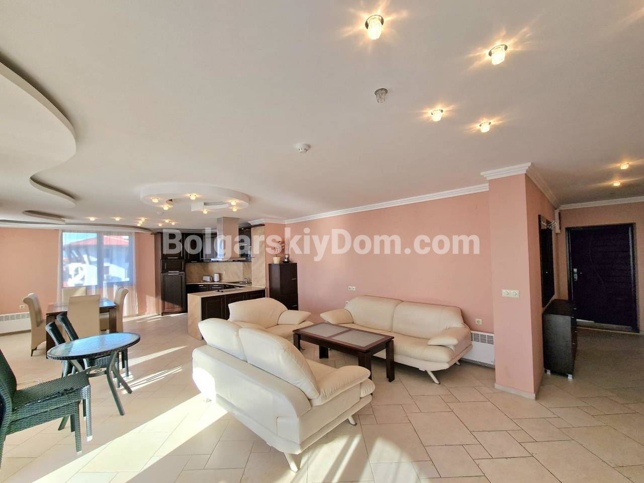 Панорамный вид на море на первой линии и атмосфера старой Болгарии - предлагаем просторную квартиру с двумя спальнями в знаковом для Святого Власа комплексе Манастира 2. Говоря коротко про квартиру, это 112 кв.м. абсолютного комфорта на втором этаже: огромная гостиная с техникой, две террасы, смотрящие прямо на залив, и мебель с техникой в отличном состоянии. Комнаты светлые и просторные, в санузле ванна, есть небольшое окошко, терраса - словно из фильмов. Редкий случай, когда вы покупаете не просто метры, а готовое решение на самом берегу в Святом Власе - ключи у нас в офисе, так что заехать можно сразу после сделки.