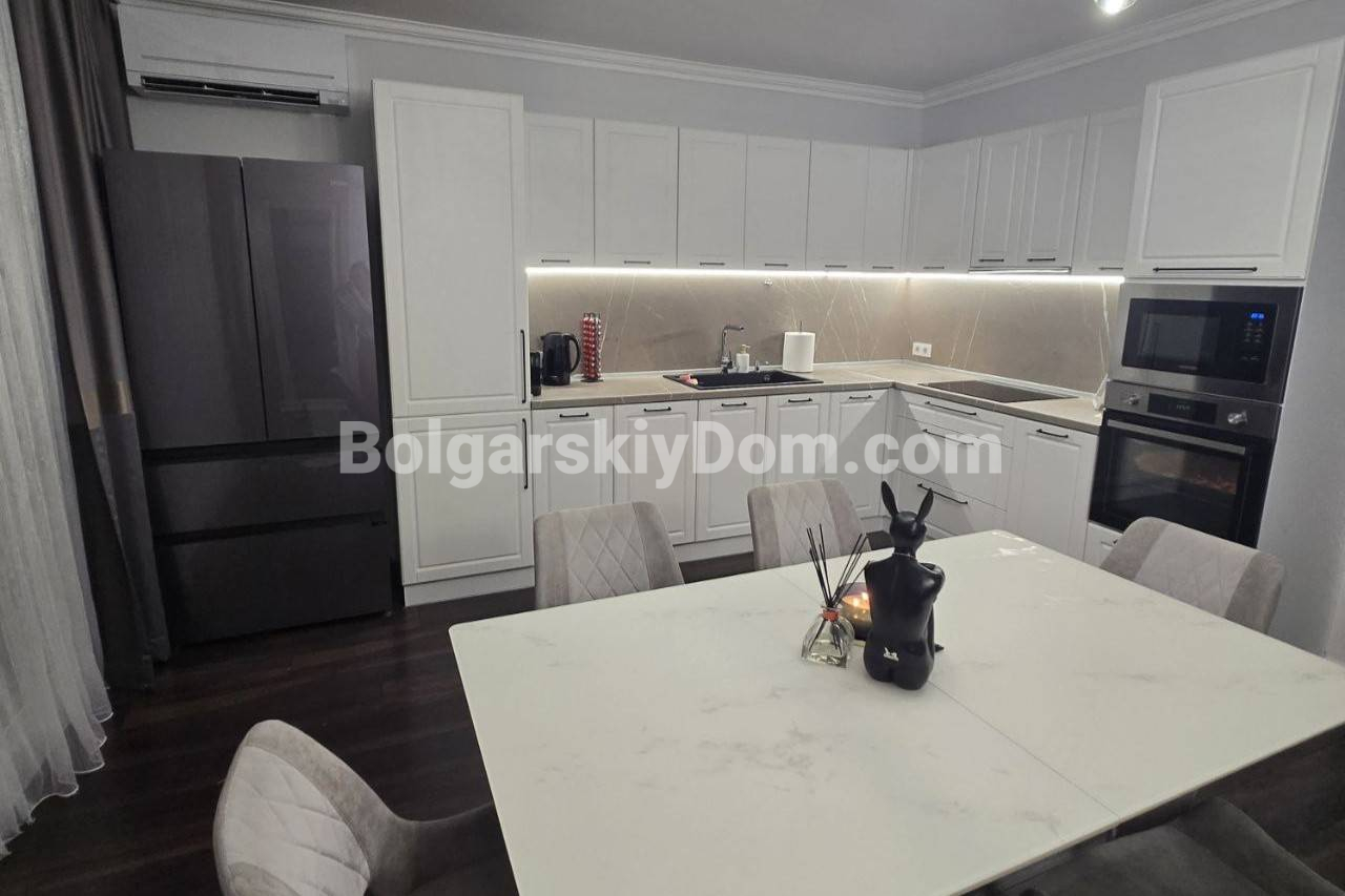 Вау-формат для соискателей действительно уникальной недвижимости! Пополнение каталога: статусное жилье в малоквартирном комплексе Магнолия 5, где на все здание приходится лишь 20 квартир. Квадратура объекта составляет 120 кв. м жилой площади, к которой добавлены три террасы общей площадью 40 кв. м. Пятый этаж обеспечивает отличный уровень инсоляции и тишину, а индивидуальный дизайн интерьера с премиальной отделкой и встроенной техникой избавляет от любых хлопот с ремонтом. Три отдельные террасы позволяют организовать разные зоны отдыха на свежем воздухе. Планировка включает просторную гостиную, переходящую в обеденную зону, две изолированные спальни и современный санузел. Это полностью готовое решение для комфортного проживания в самом центре Солнечного Берега. Готовы к показам или хотите получить видеообзор? Звоните!