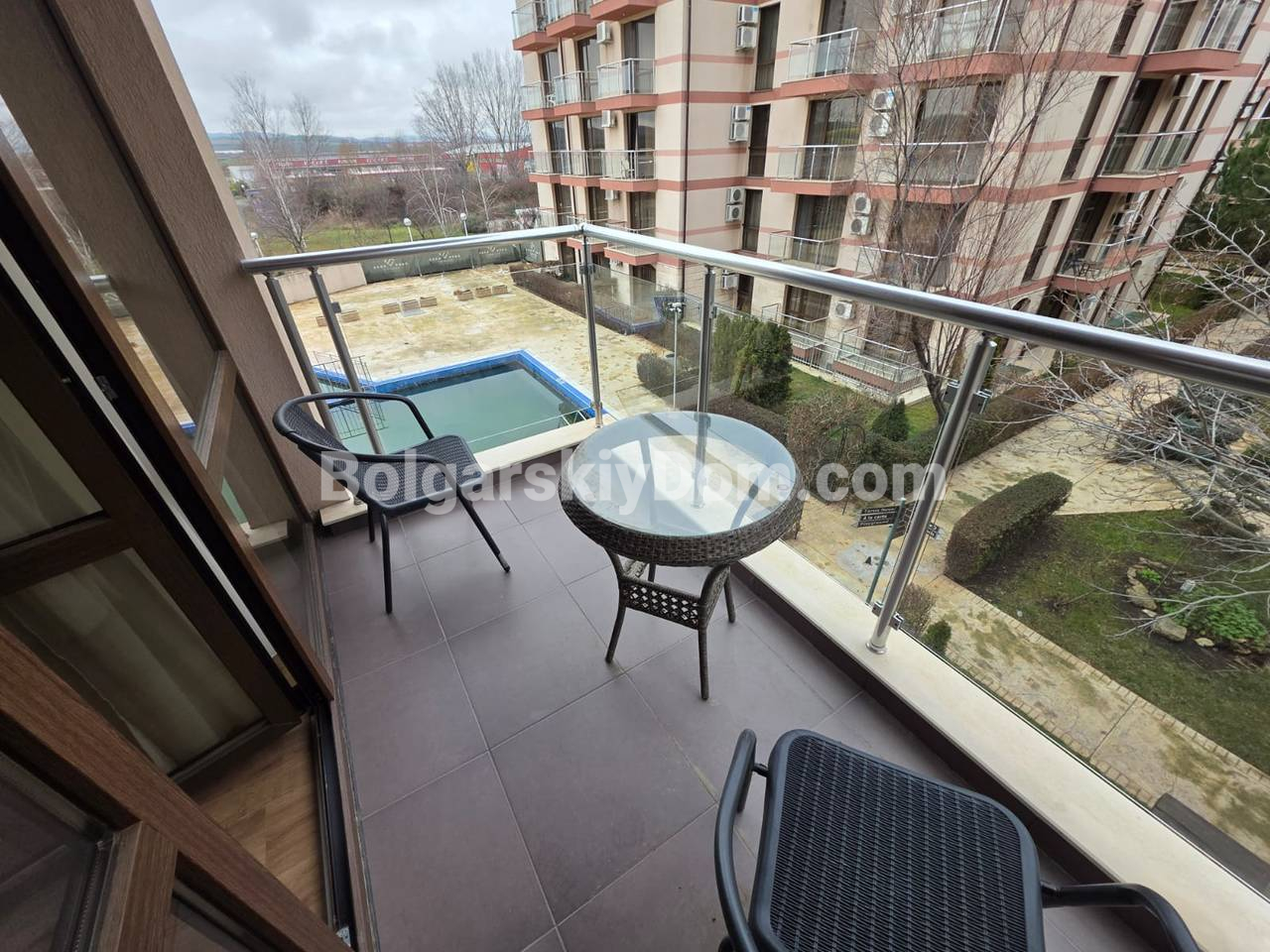 Комплекс расположен в тихой зеленой части Солнечного Берега и имеет отлично сформированную инфраструктуру уровня премиум: собственный аквапарк, два бассейна, один из которых длиной 30 метров, спа-центр и волейбольную площадку. На территории работают два ресторана, есть детские игровые зоны с анимацией. Здание введено в эксплуатацию, получен Акт 16, отдельные счета на электричество. Тарсис Нова подходит для круглогодичного пребывания, а закрытая территория и парковка обеспечивают безопасность. Специалисты Болгарского Дома подготовят документы и проведут показ в удобное время. Хотите посмотреть видео планировки или узнать подробнее о доходности аренды в этом комплексе? Напишите нам прямо сейчас!