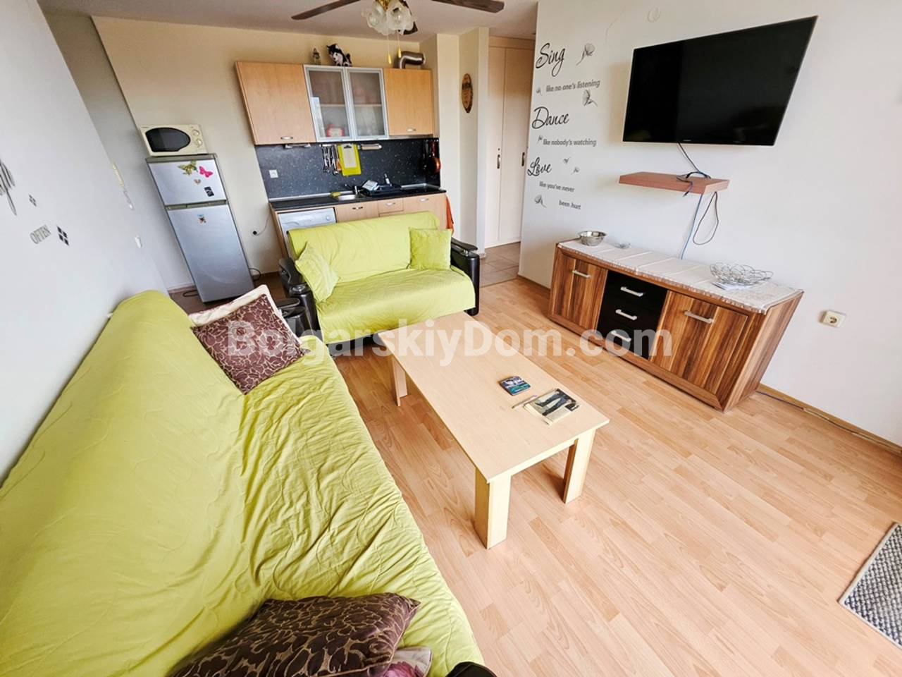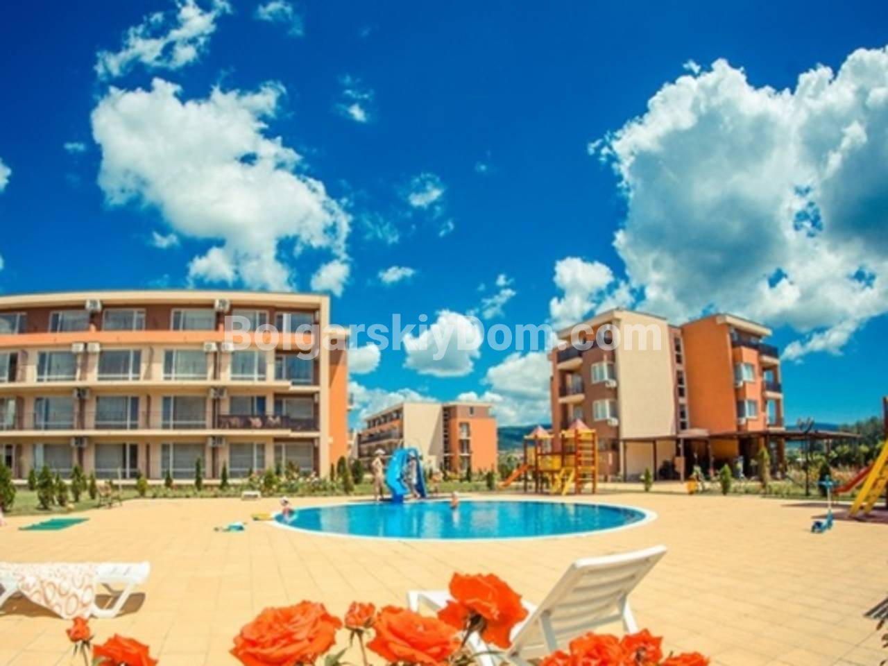 Расположение в западной части Солнечного Берега делает этот вариант отличным решением для жизни круглый год: в паре минут ходьбы находятся супермаркет ММ, аквапарк и медицинский центр. На территории комплекса создана полноценная инфраструктура с бассейнами, спортивными площадками, магазином и ресторанами. Здание кирпичное, введен в эксплуатацию Акт 16. Расстояние до песчаного пляжа составляет около 900 метров по ровной дороге. Команда Болгарского Дома проведет для вас осмотр объекта и возьмет на себя все бюрократические вопросы сделки.