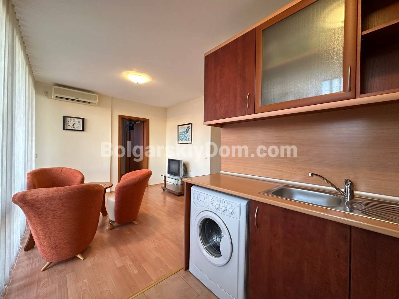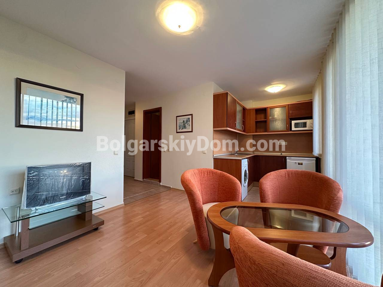 Главный акцент этого объекта - открытая терраса, которая служит полноценной зоной отдыха на свежем воздухе с видом на залив. В спальнях установлены большие окна, что обеспечивает отличное естественное освещение в течение всего дня. Квартира находится в хорошем состоянии, вся сантехника и мебель исправны. Расположение позволяет быстро добираться до пляжа и основной курортной инфраструктуры, при этом само здание находится в спокойном месте. Империал Форт - образец и инфраструктуры, и отличной локации: бассейны, рестораны, магазины и другие удобства есть на территории. До моря 100 метров.
