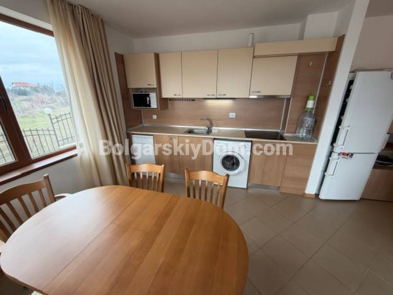 Гардения Хиллс - компактный комплекс с болгарской архитектурой: черепица, камень, зелень во дворе. Работает круглогодично, есть бассейн, ресторан, детский уголок, барбекю-зоны и парковка, круглосуточная охрана. Квартира стоит на тихой окраине Солнечного Берега - курортный шум сюда не доходит, зато Лидл в паре минут, а до центра курорта и пляжа - около 2 км на машине или велосипеде. Хорошая база и для сезонного отдыха, и для постоянного проживания.