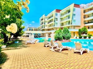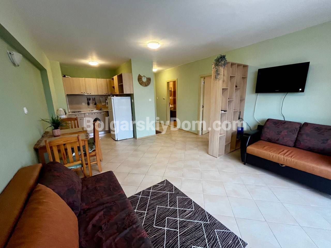 Гранд Камелия - благоустроенный комплекс с развитой инфраструктурой: два больших бассейна и два детских, ресторан, кафе, спортивные площадки, детская игровая зона, парикмахерская, круглосуточная охрана с видеонаблюдением. Квартира стоит на спокойной части Солнечного Берега - нет туристического шума, а до моря всего 600 метров пешком. Рядом супермаркеты, аптека, остановка общественного транспорта. Хорошая база и для сезонного отдыха, и для постоянного проживания, и для сдачи в аренду с хорошим доходом.