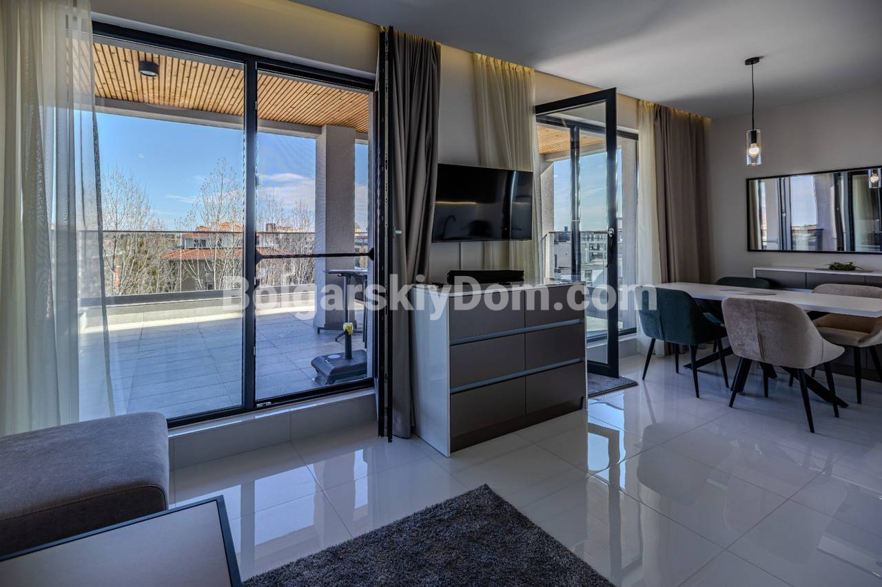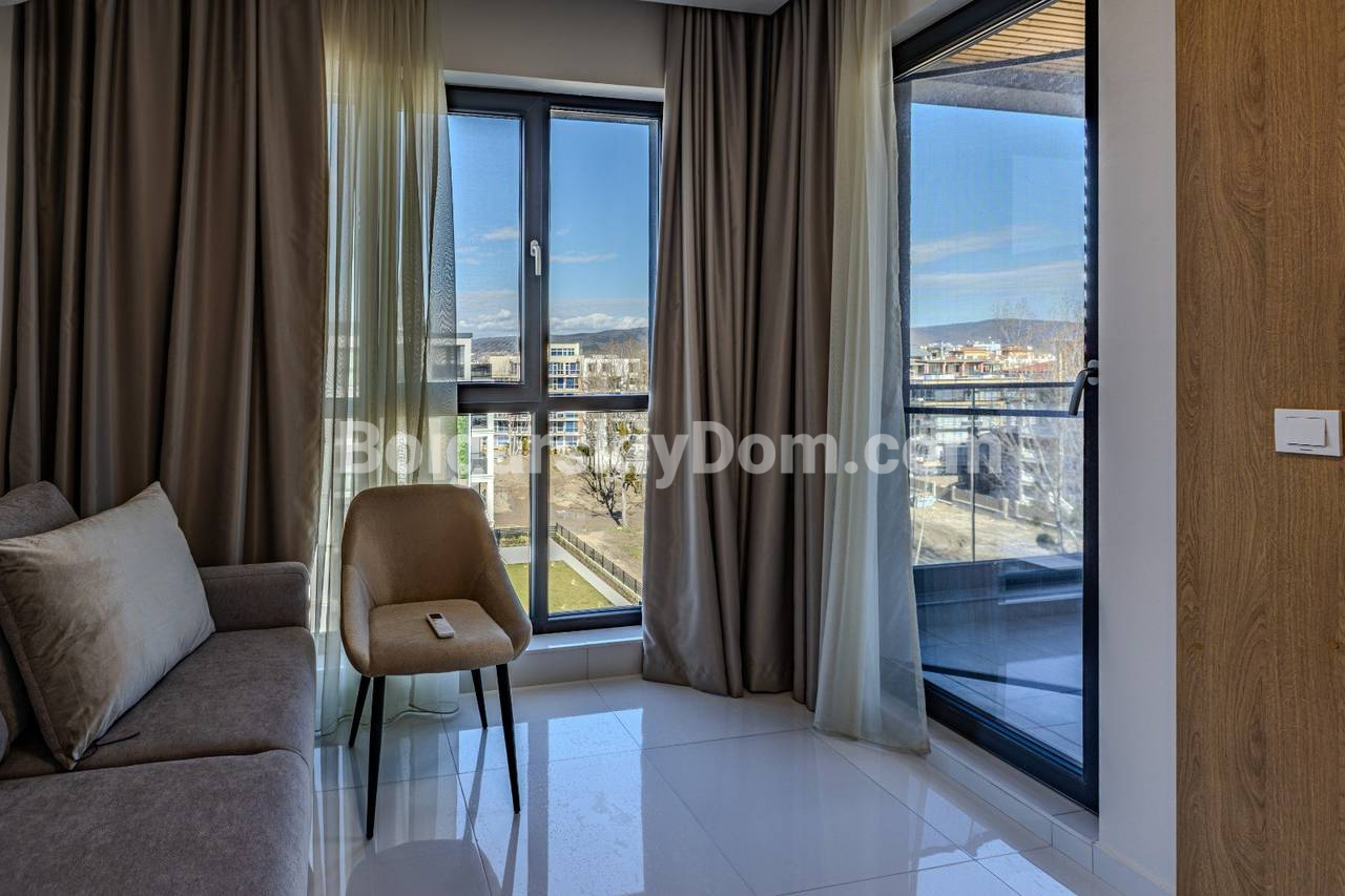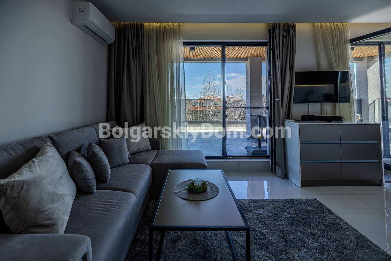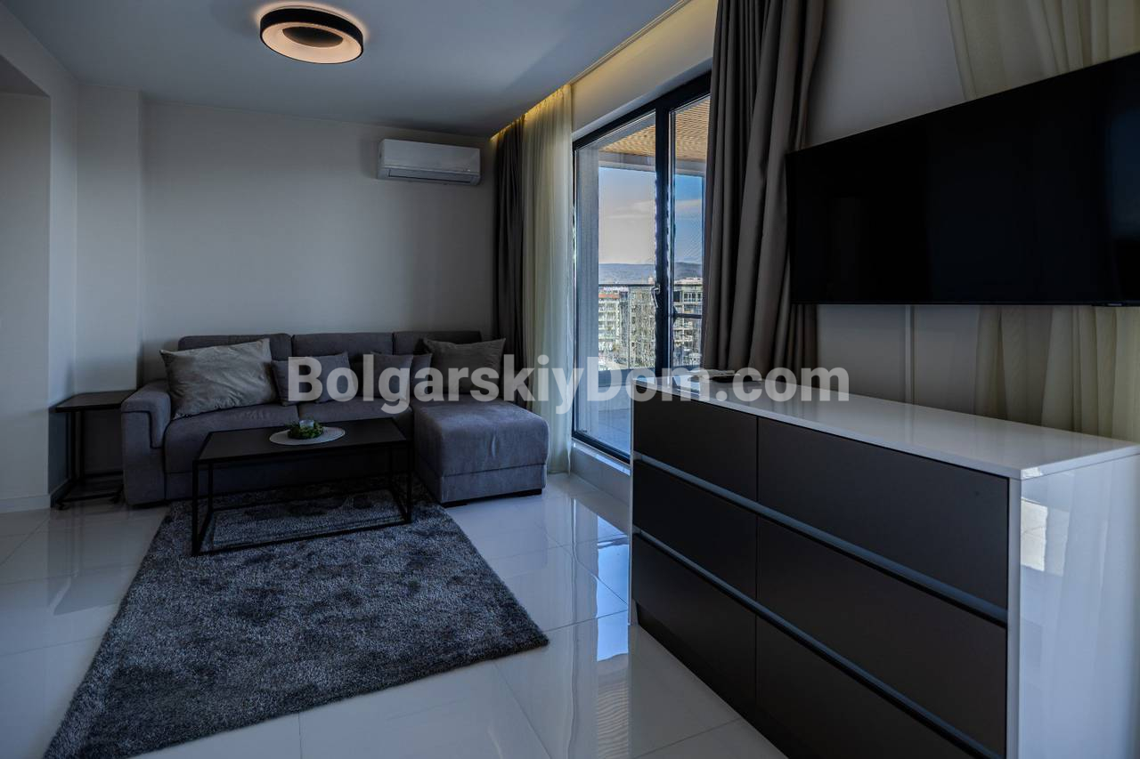 Станьте первым претендентом на покупку этого объекта! Люксовый апартамент на верхнем этаже комплекса Эмилия Романа Верде на Солнечном Берегу - просторное пространство с панорамной террасой и актуально стильным интерьером! Площадь 118 кв.м., шестой этаж (последний), построен в 2025 году. Апартамент полностью обставлен качественной мебелью и современной техникой, готов к немедленному проживанию. Три отдельные комнаты, оборудованный санузел, функциональная кухня. Отопление по системе теплого пола во всем апартаменте, кондиционеры во всех комнатах. Панорамная терраса станет дополнительным пространством для отдыха с видом на территорию комплекса. Лифт, охрана на входе, гараж и паркоместо рядом.