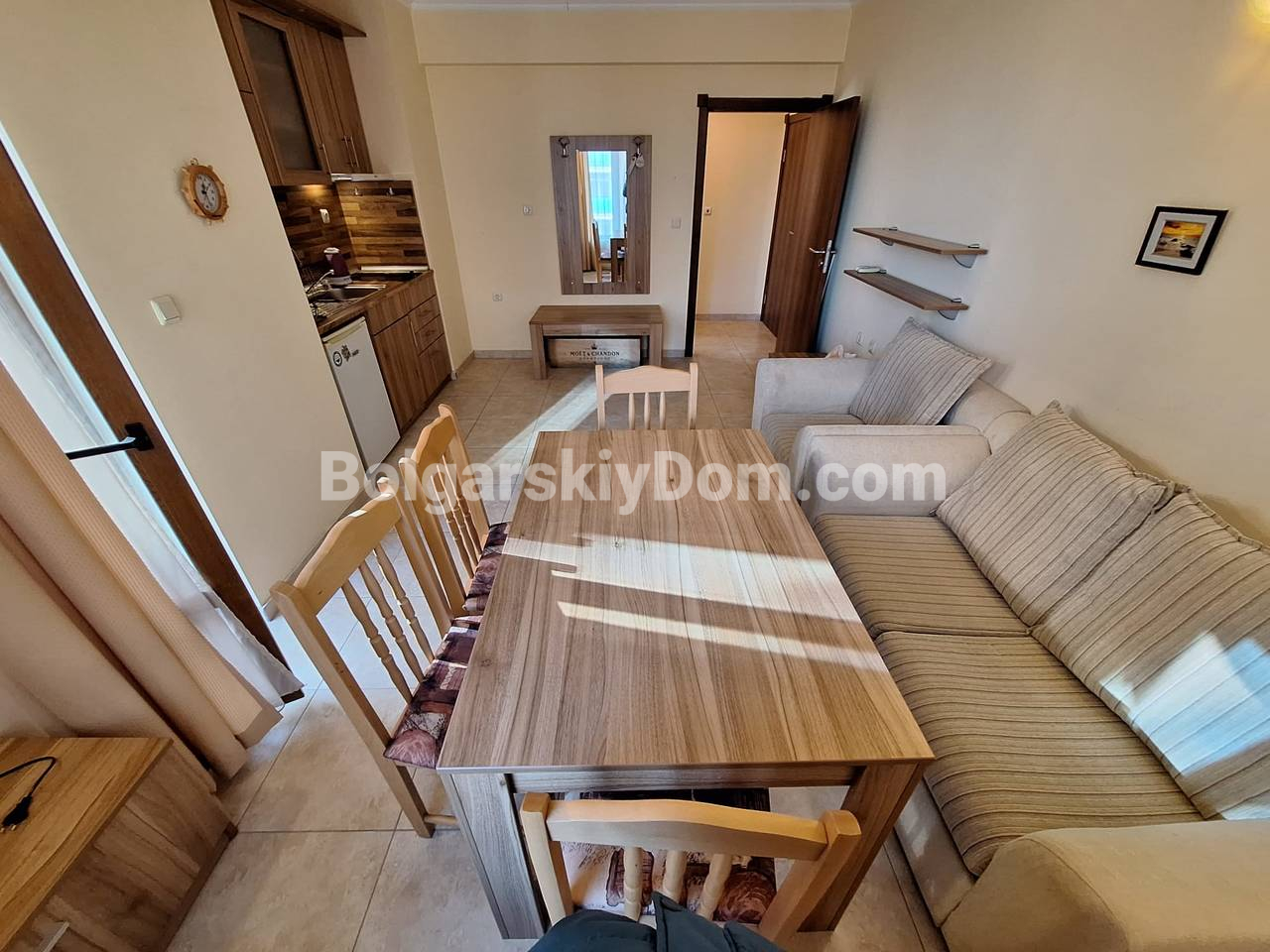 Уютный апартамент в 300 метрах от знаменитого пляжа Какао Бич, да еще и под ключ - и всё это в одном из самых спокойных уголков Солнечного Берега! Посмотрите, какой отличный объект предлагаем мы в АН Болгарский Дом в комплексе Си Ригал. Апартамент площадью 53 кв. м расположен на третьем этаже и сочетает продуманную планировку, современный ремонт и готовность к немедленному заселению. С балкона открывается вид на ухоженную зеленую территорию комплекса - то самое желанное для многих место для утреннего кофе в тишине, вдали от шума и суеты больших курортов. Планировка: изолированная спальня, светлая гостиная с кухонной зоной. Квартира полностью укомплектована мебелью и техникой - приезжайте и живите.