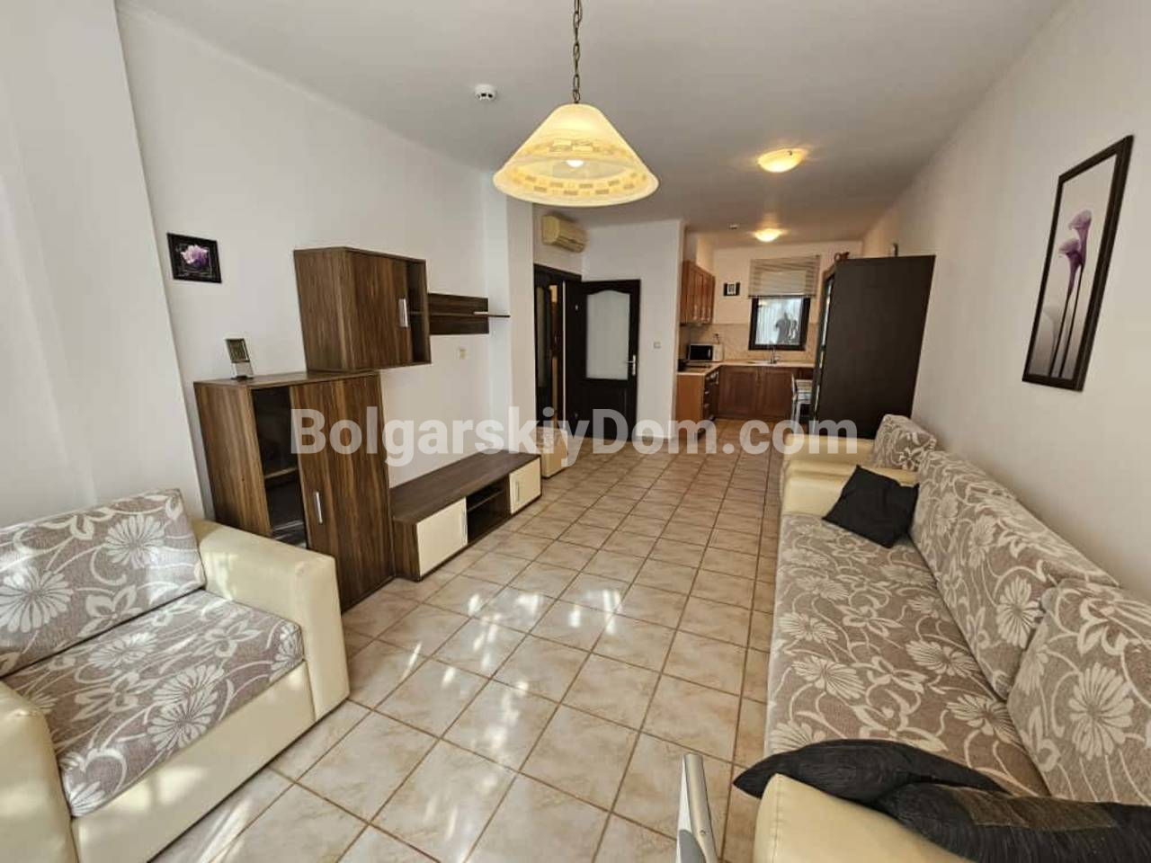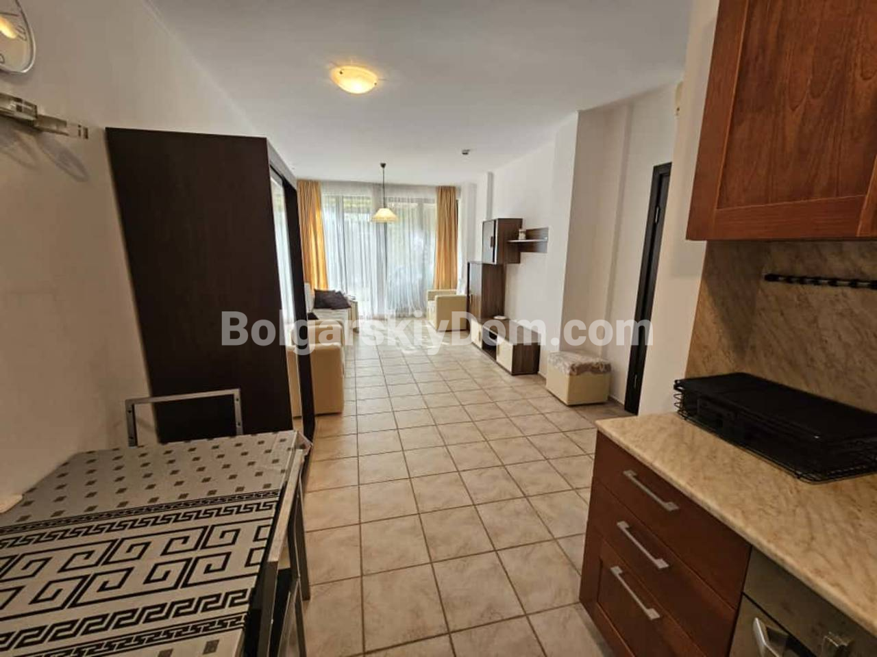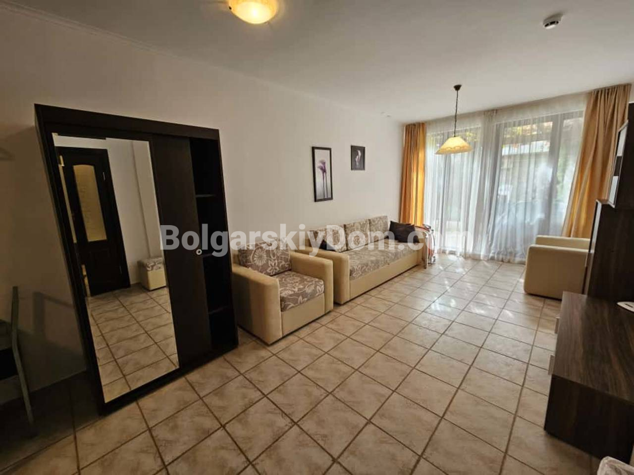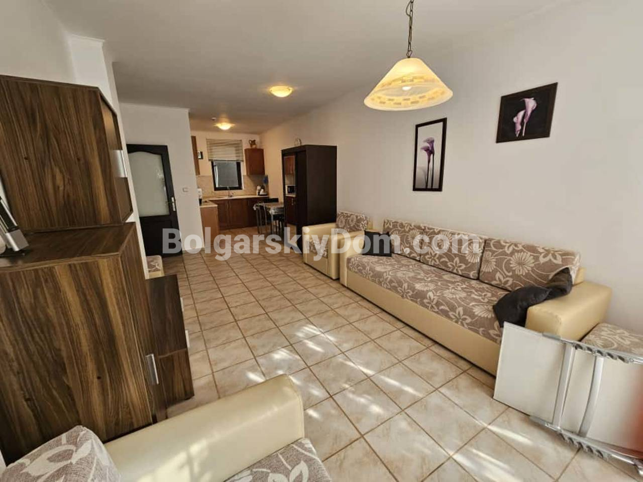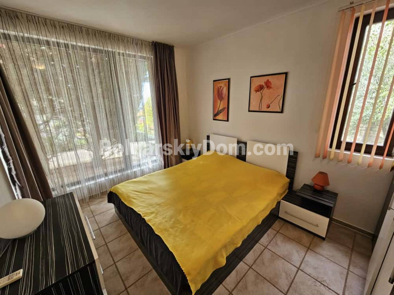 Бей Вью Виллас расположен между курортом Солнечный Берег и селом Кошарица на возвышенности в 100 метров - отсюда открывается чудесный вид на море. Комплекс полностью огорожен, охраняется, на территории функционируют два бассейна, спа-центр, ресторан, площадка для детей, мини-гольф и паркинг. Инфраструктура мирового уровня при одновременном ощущении спокойствия и уединенности. От квартиры 2 км до пляжа, 3 км до Солнечного Берега, 8 км до Несебра, 5 км до Святого Власа. Ежегодный платеж за содержание составляет 12 евро за кв.м. Акт 16 получен. Квартира готова к заселению без дополнительных вложений.