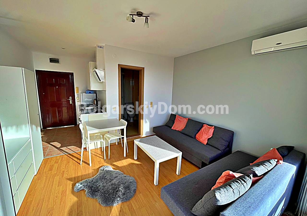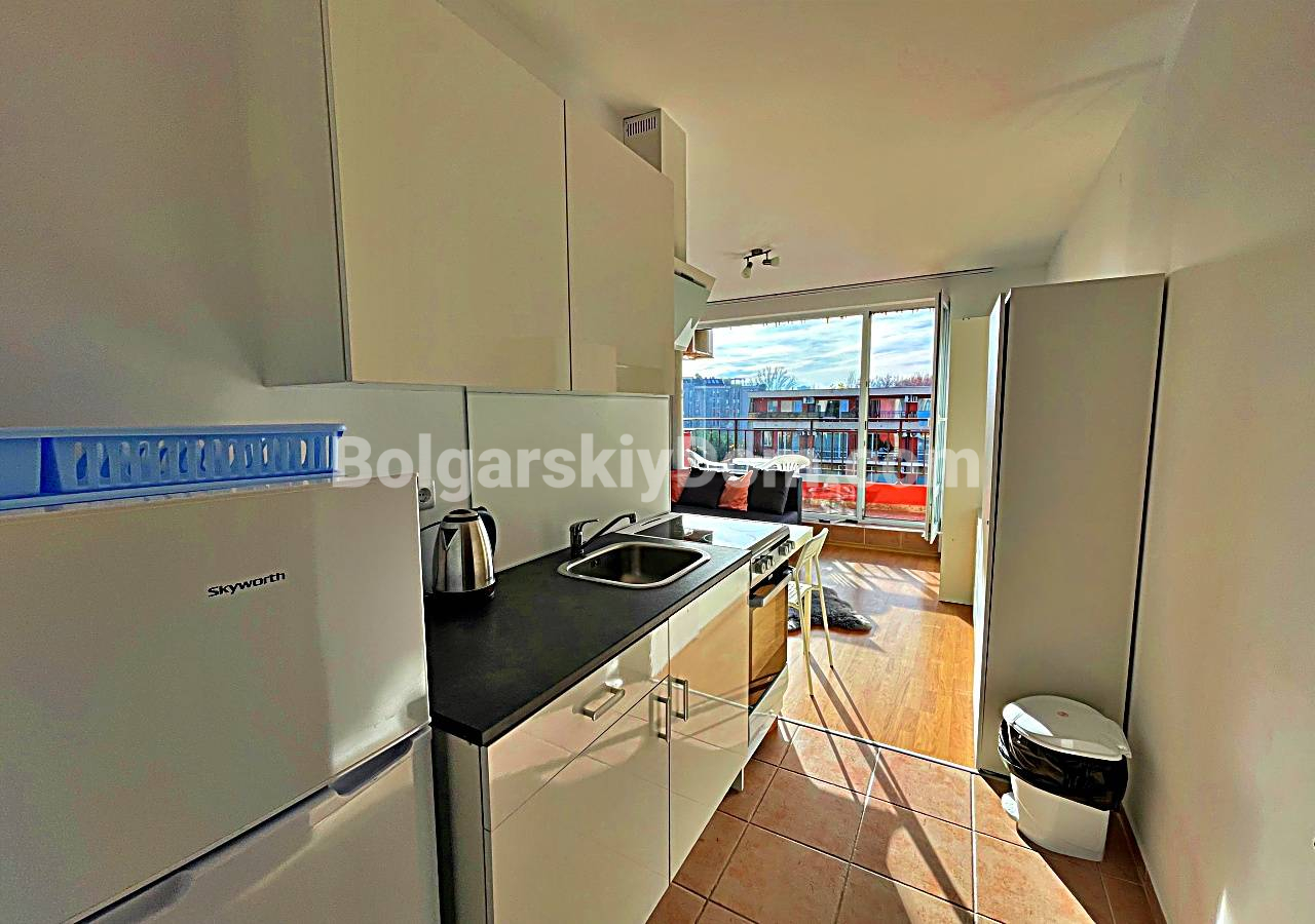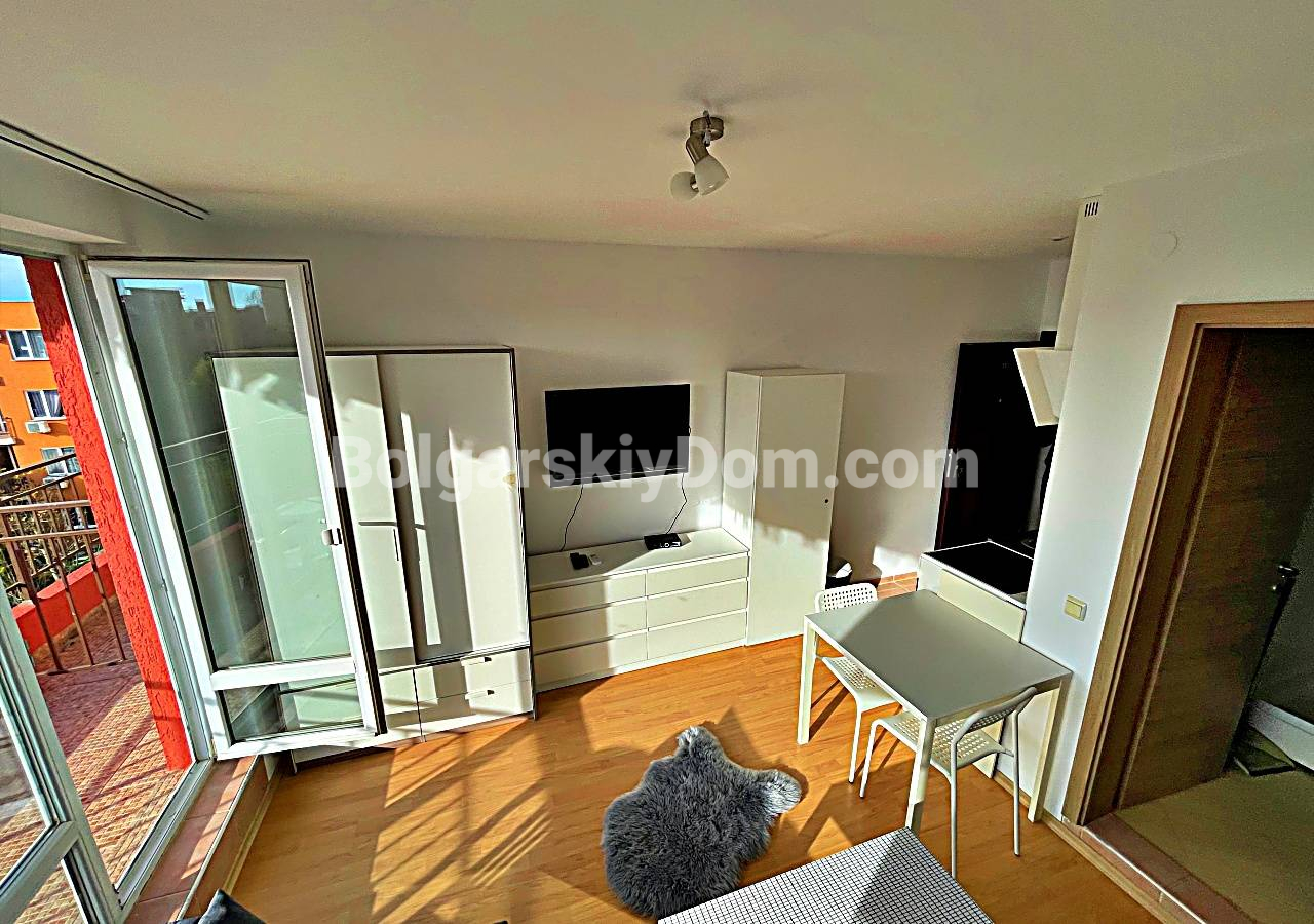 Новинка в каталоге! АН Болгарский дом представляет студию 36 кв.м в семейном комплексе Орхид Форт Гарден, Солнечный Берег. Четвертый этаж, вид на центральный бассейн. Планировка типична для студии: прихожая, гостиная с кухонной зоной, ванная с душевой кабиной, терраса. Квартира полностью меблирована и оборудована техникой, готова к заселению в день покупки. Четвертый этаж оптимален для инвестора, вы не слышите уличное движение. Терраса может быть оформлена как зона отдыха.