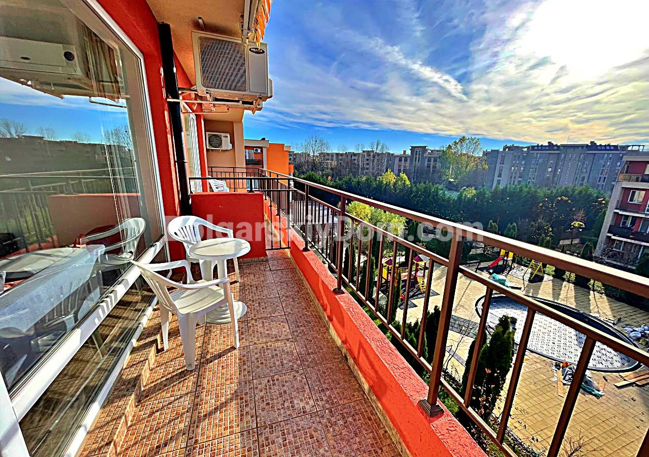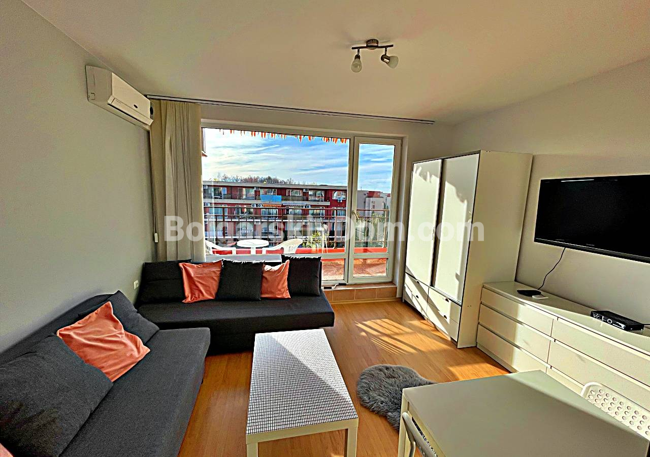 Орхид Форт Гарден - это закрытый охраняемый комплекс с полным спектром инфраструктуры: шесть бассейнов, поле для гольфа, фитнес, детские площадки, ресторан, магазины, медкабинет. Комплекс расположен в западной части Солнечного Берега, и это традиционно район постоянного проживания, не туристической суеты. Море в 900 метрах, до аквапарка несколько минут ходьбы, рядом супермаркет ММ. Студия идеально подходит для краткосрочной и среднесрочной аренды. Акт 16. Содержание 13,5 евро за квадрат в год.