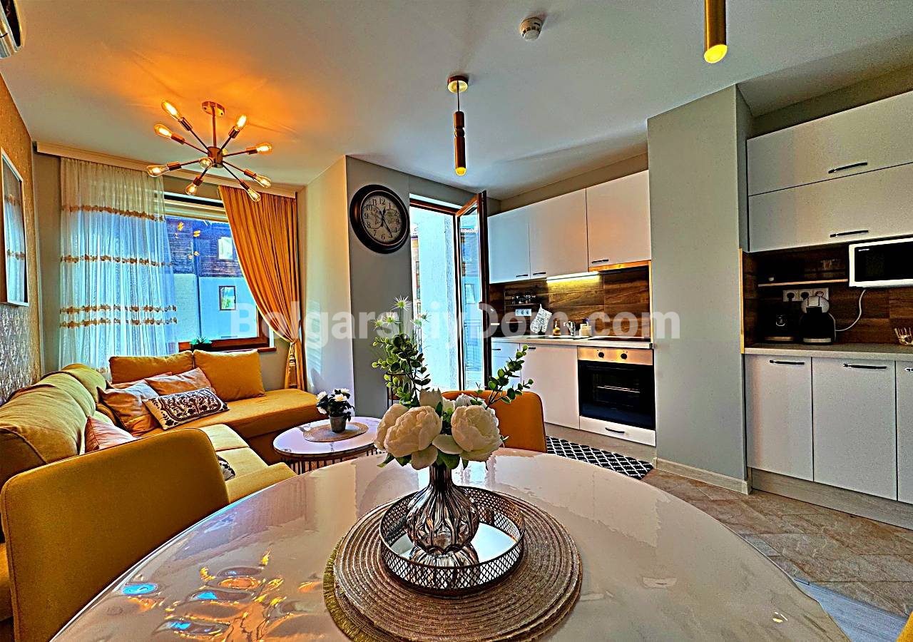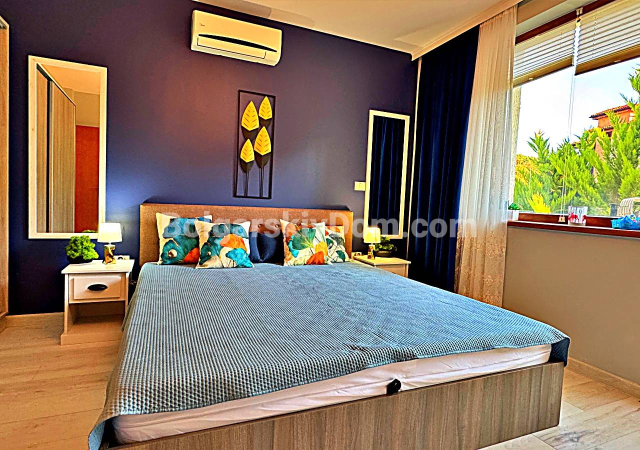 Пополнение каталога! АН Болгарский дом презентует своим клиентам двухкомнатный апартамент премиум-класса в Райском Саду, Святой Влас - первая линия с выходом на собственный пляж! 62 квадрата на втором этаже. Раздельные гостиная и спальня, ванная, балкон приватного формата. Полностью обставлен и готов к использованию. Первая линия означает прямой доступ на пляж комплекса - это главное преимущество для сезонной аренды и личного отдыха. Квартира в отличном техническом и эстетическом состоянии, позвоните, и мы организуем для вас онлайн- или офлайн-показ!