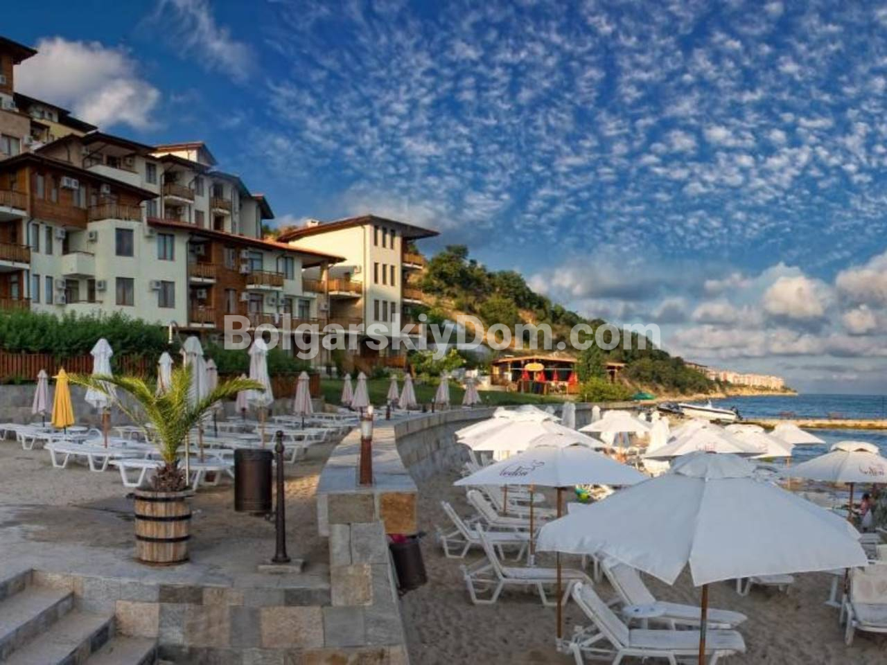 Райский Сад - элитный закрытый комплекс в люкс-локации Святого Власа, с развитой инфраструктурой: семь открытых бассейнов, один крытый, два теннисных корта, фитнес-центр, три ресторана, супермаркет. Апартаменты первой линии здесь в постоянном спросе - туристы и инвесторы ценят сочетание премиального окружения и готовности к использованию. Собственный пляж входит в обслуживание. Акт 16. Поддержка комплекса 1350 евро в год, что вполне приемлемо для такого класса недвижимости.
