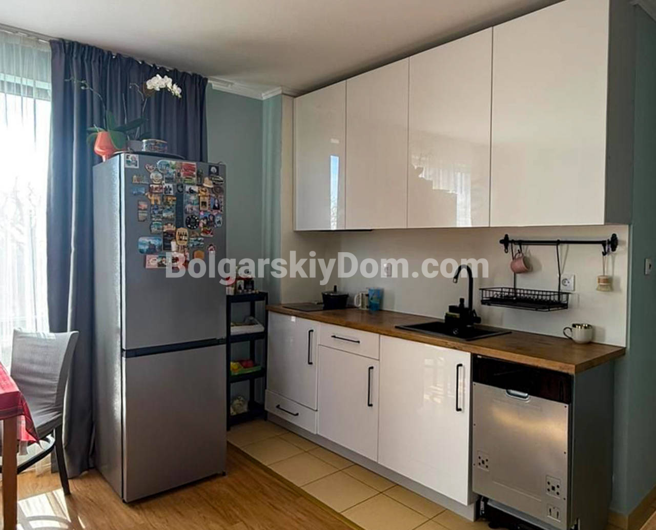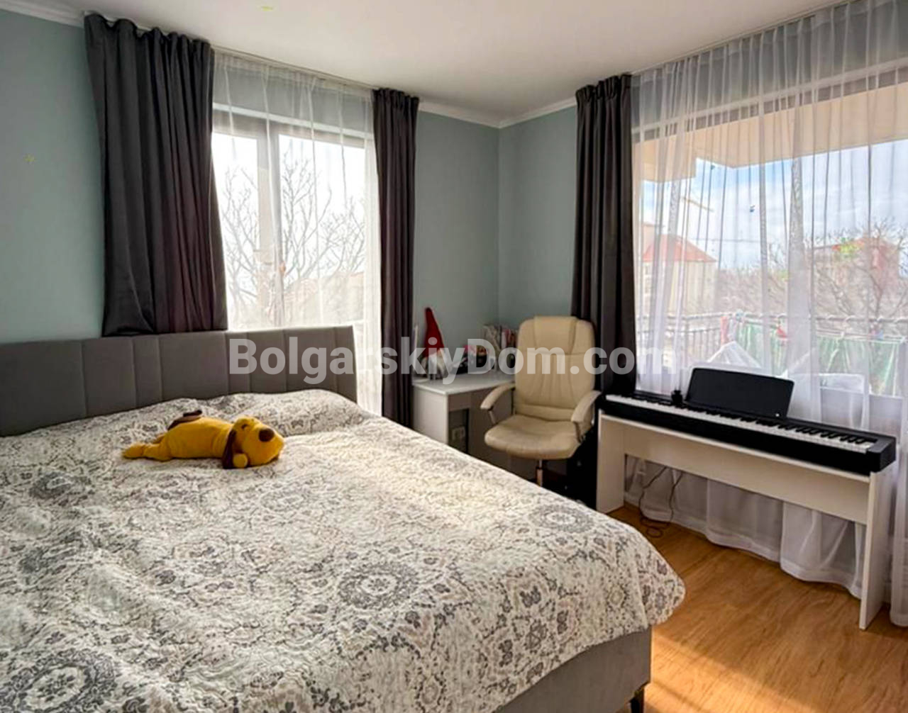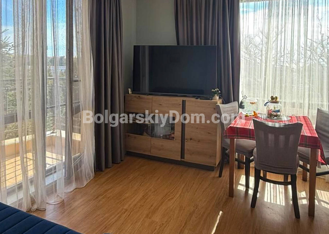 Встречайте ликвидный апартамент! АН Болгарский дом представляет квартиру 1+1 в Макон, Святой Влас - южная сторона с видом на море! Метраж 65,5 кв.м, второй этаж. Квартира типа «распашонка» с двумя балконами: с одного восход, с другого закат - такое расположение редко встречается. Мебель абсолютно новая, оставляется полностью. Техника: индукционная плита, посудомойка, холодильник, стиральная машинка (размещена в санузле), телевизор. Спальня оборудована большой кроватью с подъемным механизмом, что удобно при хранении вещей. Входная дверь недавно заменена. Ориентация на юг означает, что зимой квартира хорошо согревается естественным светом, летом воздушная циркуляция по двум балконам спасает от перегрева.