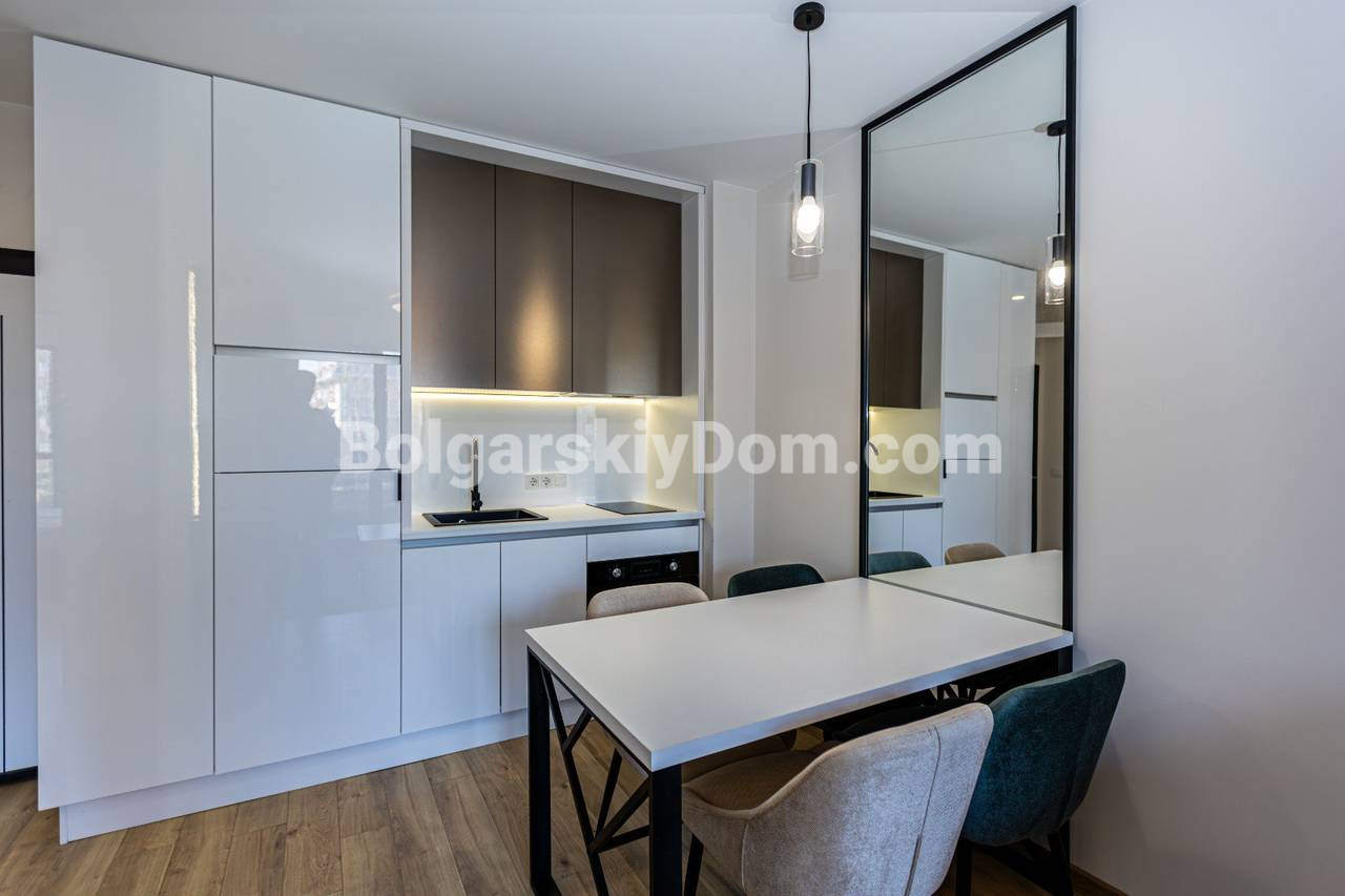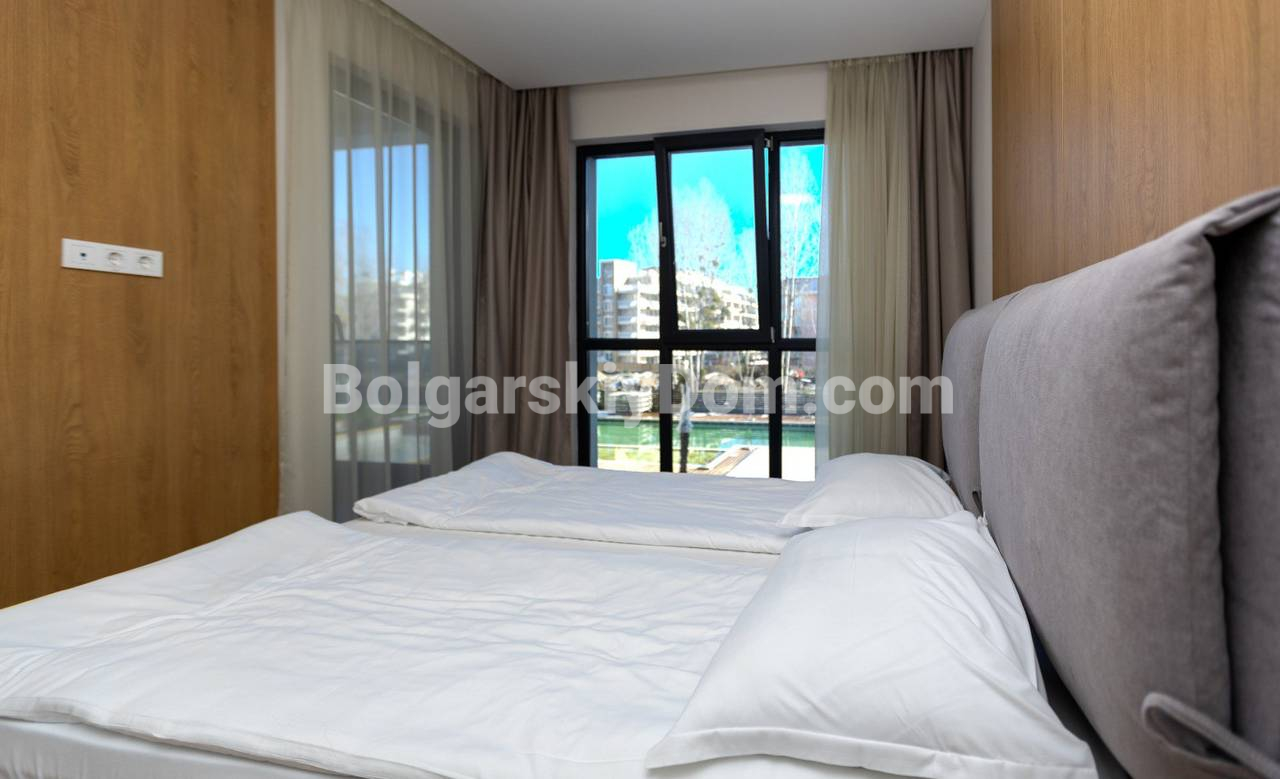 Район Фрегата в центре Солнечного Берега славится лучшей инфраструктурой. До песчаного пляжа пара минут пешком. Здание имеет Акт 16, счета на электричество бытовые. На закрытой территории работают бассейны, кафе, дежурит охрана. Годовая такса обслуживания составляет 9,6 евро за метр. Близость магазинов и ресторанов гарантирует удобство в любой сезон. Команда компании Болгарский Дом проведет показ и подготовит документы для сделки.