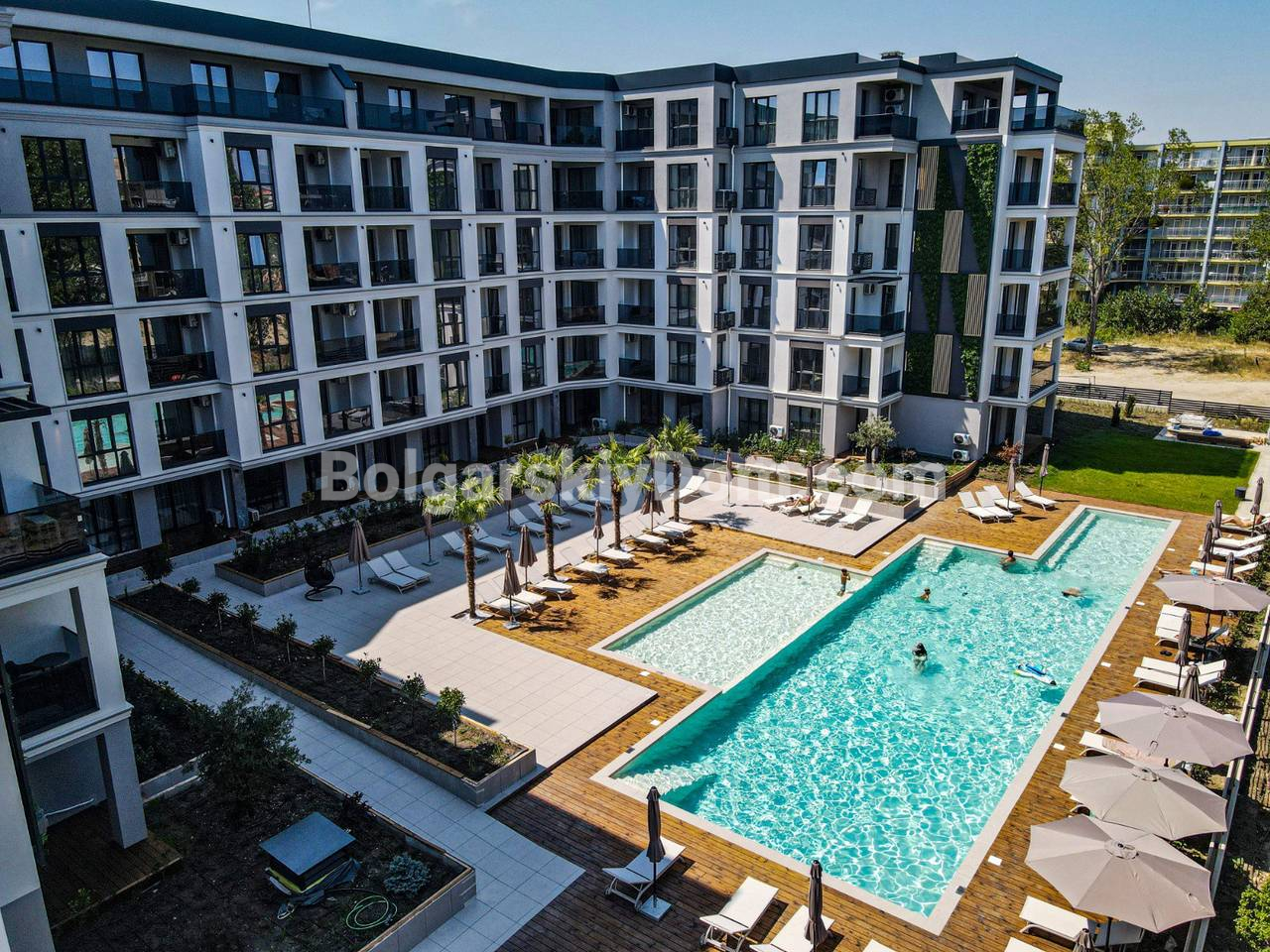Заезжайте в полностью готовую двухкомнатную квартиру площадью 105 кв. м в престижном комплексе Эмилия Романа Верде! Этот апартамент с сегодняшнего дня в продаже в АН Болгарский Дом. Третий этаж открывает вид на бассейн. Две отдельных комнаты и два санузла обеспечивают комфорт и семье, и паре. Вся обстановка остается новому владельцу. Вы сможете начать отдых или запустить аренду сразу после подписания бумаг.