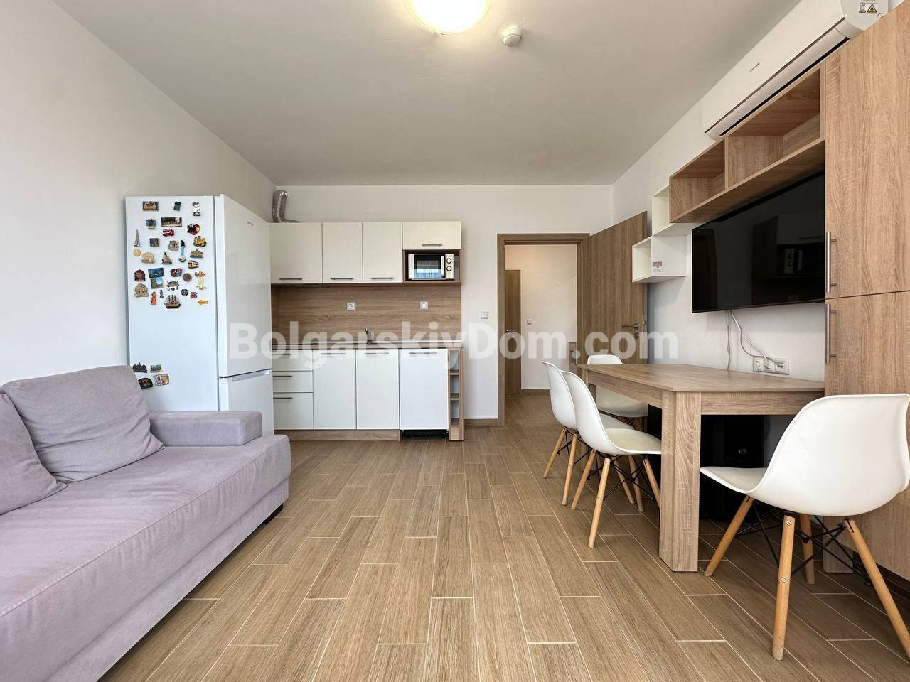 Эксклюзивное предложение в одном из красивейших и наиболее востребованных комплексов курорта Солнечный берег - Каскадас уже ждет новых владельцев. Светлый и стильный апартамент с двумя отдельными спальнями площадью 64 кв. метра расположен на пятом (предпоследнем) этаже самого "свежего" корпуса. Квартира ориентирована на юго-восток. Интерьер выполнен в сдержанном, лаконичном стиле: мягкая палитра, чистые линии и ощущение простора. Здесь уже есть всё необходимое для комфортной жизни — мебель и техника, а пространство оставляет приятную свободу для творчества. Добавьте любимые детали: текстиль, декор — и этот интерьер легко станет отражением именно вашего вкуса и настроения. Это идеальное полотно, на котором можно «написать» свою историю жизни у моря.