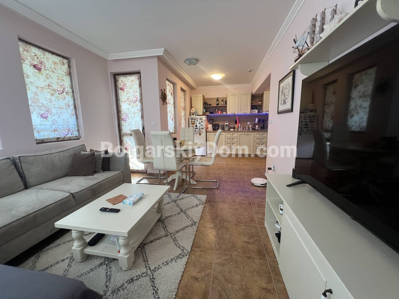 Элегантный и престижный вариант от Болгарского Дома! Просторный апартамент с двумя спальнями в комплексе Малката Воденица в районе Русалка, Святой Влас. Объект на втором этаже пятиэтажного кирпичного здания 2015 года постройки с лифтом. Общая квадратура 80 кв.м. с удобной и светлой планировкой: гостиная с кухонной зоной, две отдельные спальни, два санузла, две террасы. Все окна ориентированы на море и город - потрясающие панорамные виды на Чёрное море, яхты и окрестности. Апартамент полностью меблирован стильной мебелью, оснащен всей необходимой техникой и готов к круглогодичному проживанию или сдаче в аренду!