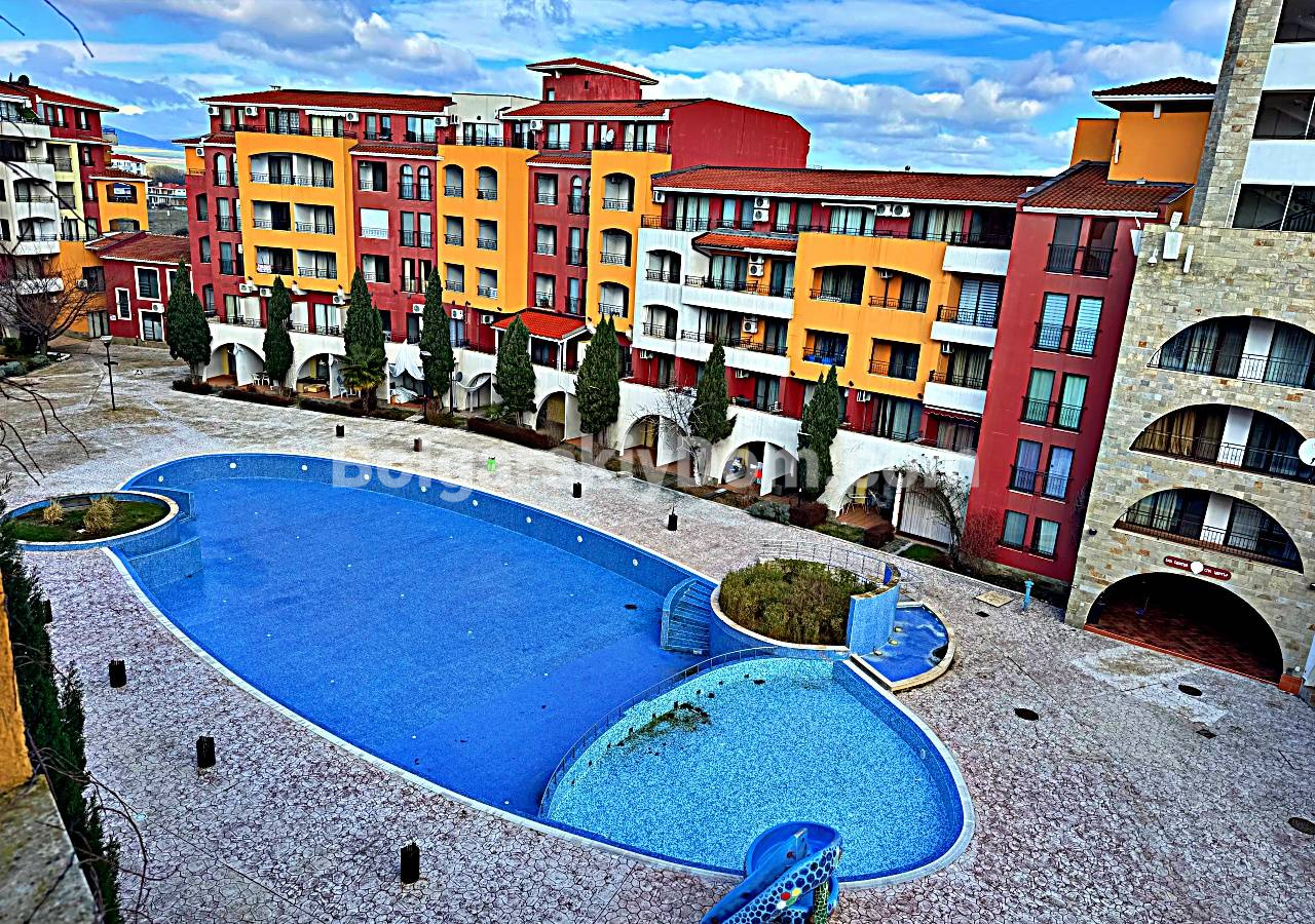 Марина Кейп - крупный закрытый СПА-комплекс с собственной яхтенной пристанью: несколько бассейнов (включая детские секции), рестораны, кафе, бары, супермаркет, магазины, фитнес, сауна, джакузи, массажные кабинеты, медицинский центр, салон красоты, детский центр, охраняемая парковка, круглосуточная охрана и видеонаблюдение. Всё это в 50-100 метрах от песчаного пляжа - шаг до моря, при этом район спокойный, без толпы Солнечного Берега (8 км до него). Такса поддержки фиксированная - 12 евро за кв.м. в год (включает бассейны, уборку, охрану, обслуживание). Акт 16 получен давно, никаких рисков. Компания Болгарский Дом пришлёт свежие фото/видео, организует онлайн-показ или выезд на объект и закроет сделку оперативно - напишите в чат или позвоните!