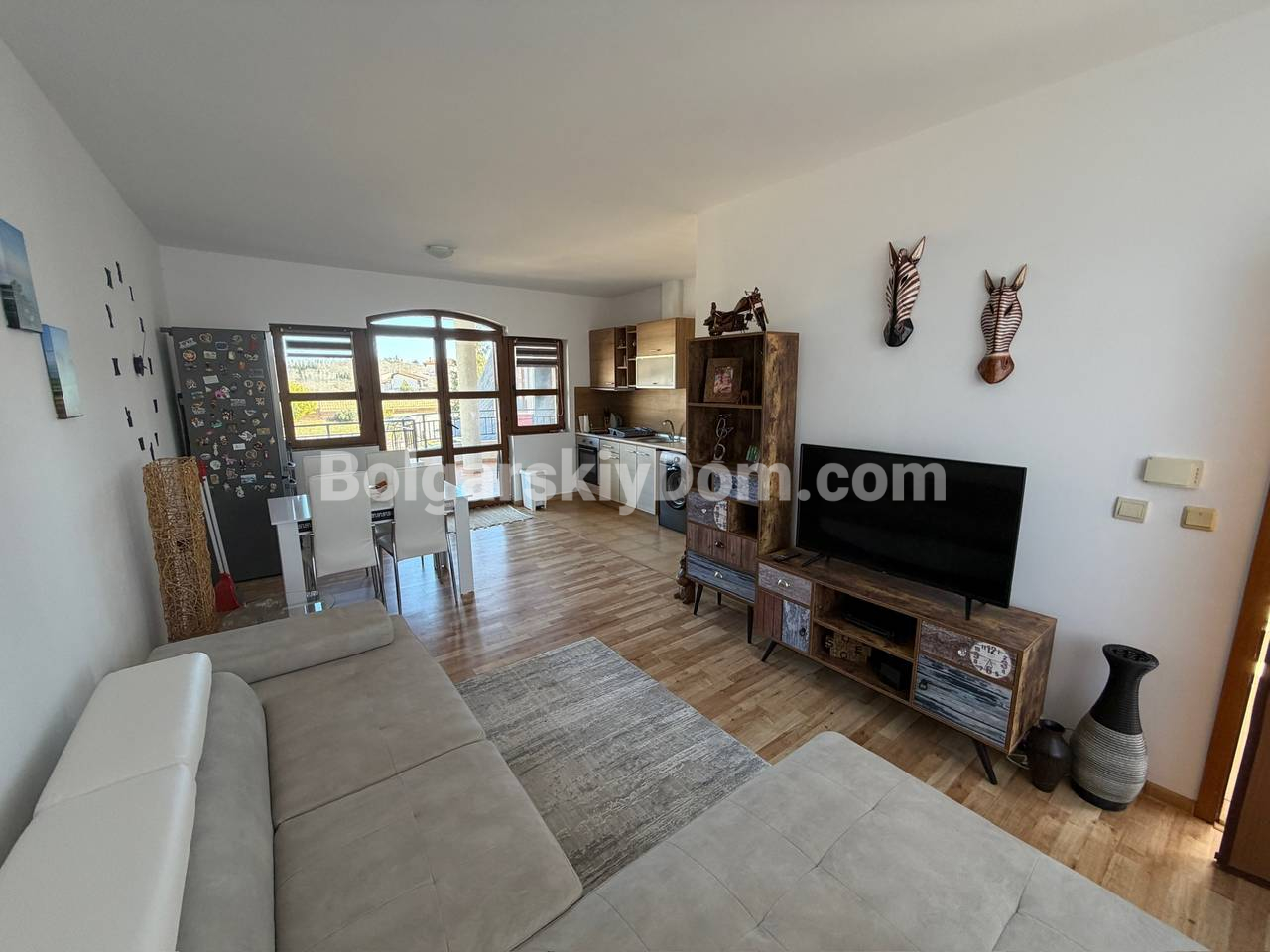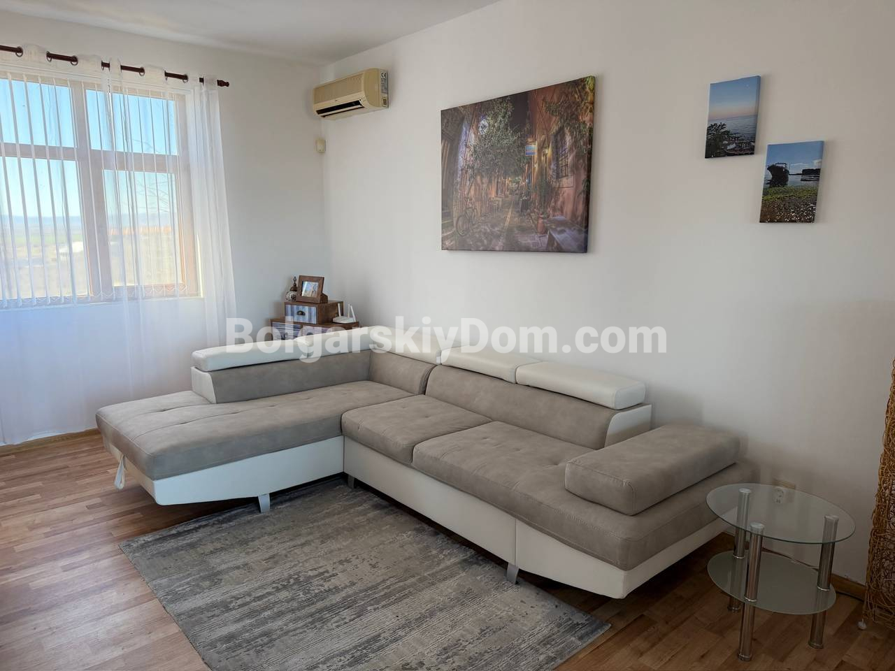 Пополнение каталога от Болгарского Дома! Просторный трехкомнатный апартамент с панорамным видом на горы в комплексе Несебр Вью в селе Кошарица. Квартира площадью 96 кв.м. расположена на 2-м этаже (верхний в двухэтажной секции) кирпичного дома 2008 года постройки. Планировка включает прихожую с кухонным боксом, коридор, две отдельные спальни, санузел с душем и туалетом, плюс терраса с видом на горы. Полностью обставлена мебелью, готова к заселению или сдаче в аренду как инвестиционный объект.