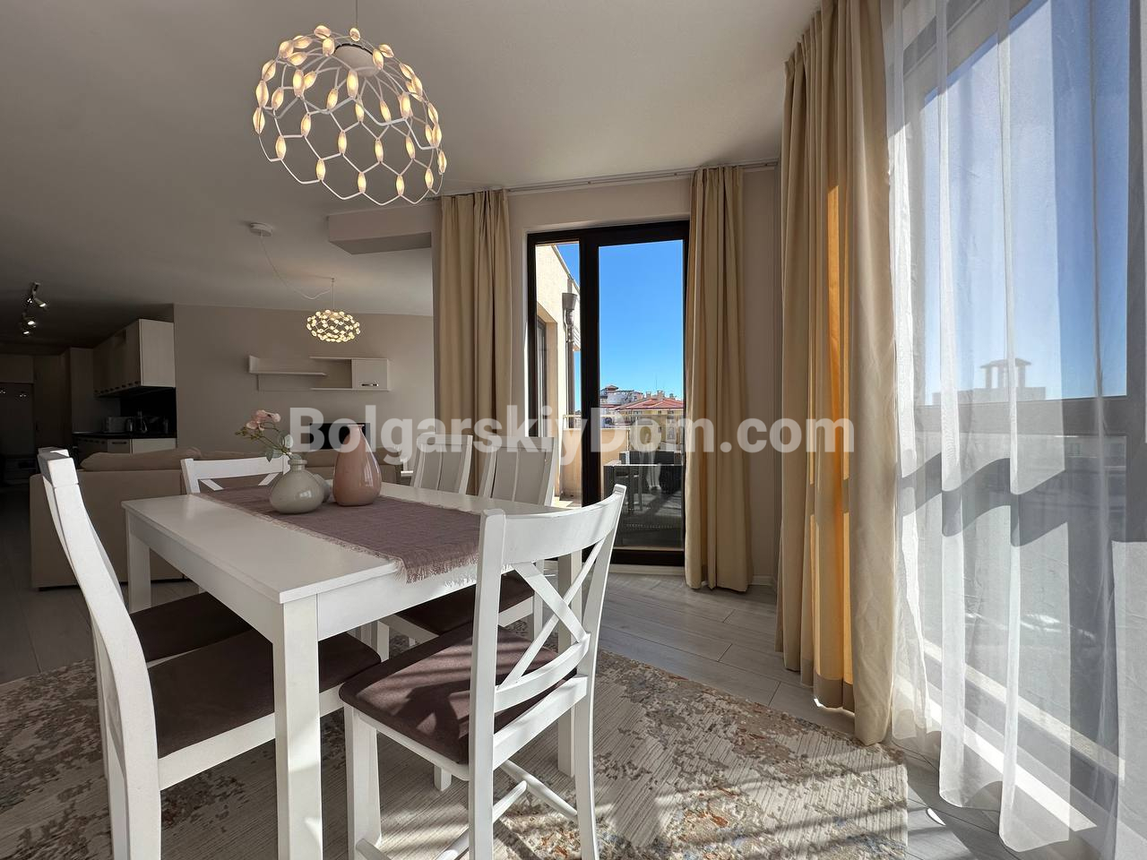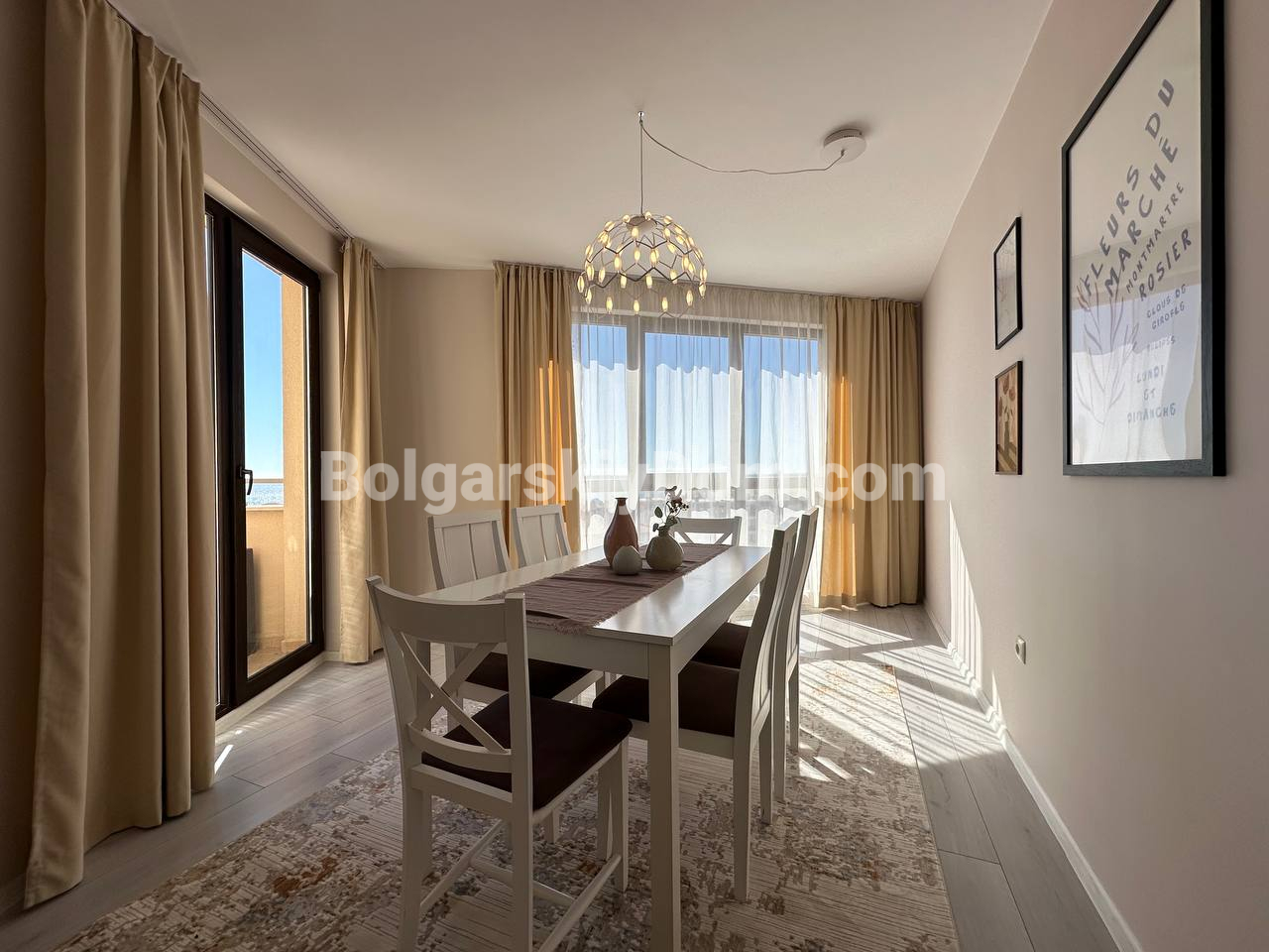 Эксклюзивный морской вариант от Болгарского Дома! Видовая трехкомнатная квартира с панорамными видами на море в комплексе Миллениум 2, расположенном в центре квартала Юрта в Святом Власе. Объект на 5-м этаже семиэтажного здания с лифтом, общая площадь 130 кв.м. Все окна ориентированы строго на юг и выходят на море - солнце весь день, невероятные закаты и рассветы прямо из гостиной. Планировка грамотная и функциональная: просторная гостиная, две отдельные спальни (комнаты с нестандартной, интересной формой для максимального уюта), огромная стильная кухня (со встроенной стиральной машиной, посудомойки нет), два санузла - один с ванной, второй с душевой кабиной. Две большие террасы с захватывающим панорамным видом на море. Квартира в отличном состоянии, стильная отделка, полностью меблирована и оснащена техникой.