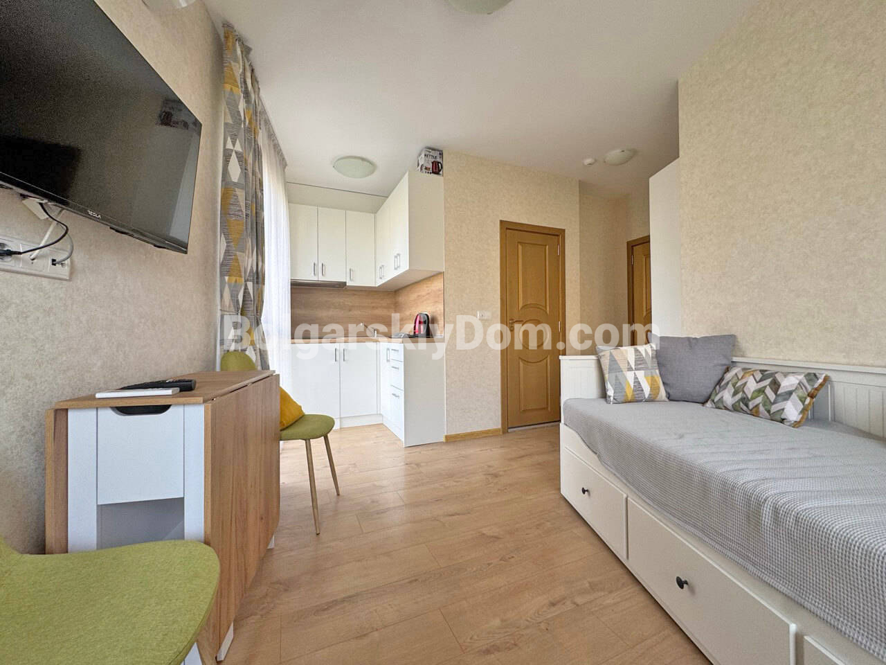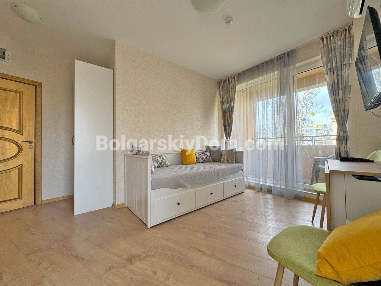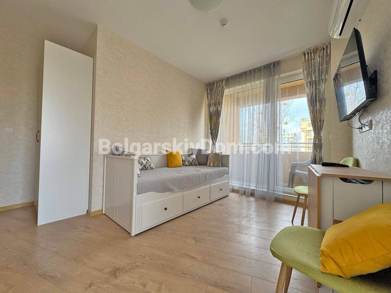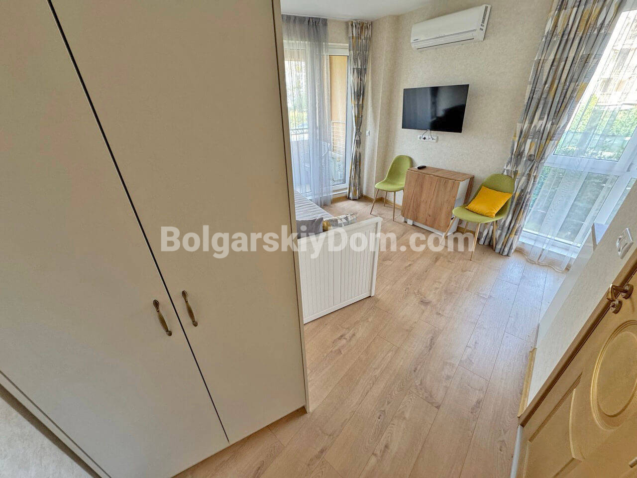 Встречайте новинку от Болгарского Дома! Светлая и полностью обставленная студия в комплексе Афродита Парк в зеленой тихой части Солнечного Берега. Площадь 25 кв.м. на 2 этаже. Квартира с отдельной кухонной зоной, зоной отдыха и балконом. Мебель новая, техника - отличный формат несмотря на небольшую площадь. Ликвидная недвижимость!