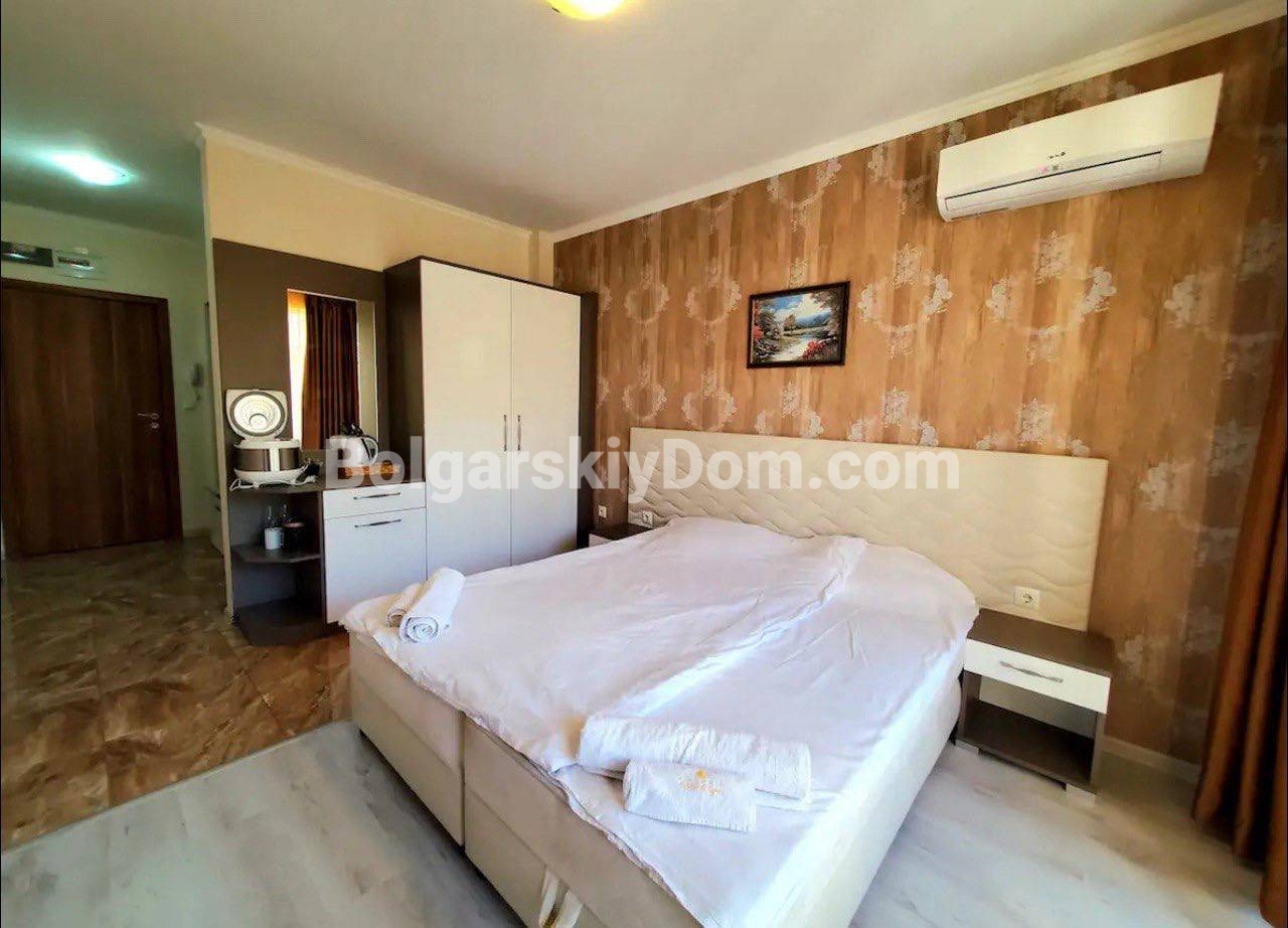Пополнение каталога от Болгарского Дома! Светлая и полностью обставленная студия в комплексе Вила Сардиния в Святом Власе. Площадь 33 кв.м., максимально удобное расположение на 2 этаже. Квартира с панорамным видом на горы, современным ремонтом и качественной мебелью. Всё уже на месте - техника, посуда, текстиль - приезжаете и сразу начинаете отдыхать или сдавать в аренду. Удобная планировка, хорошая естественная освещенность и ощущение простора несмотря на компактный метраж.