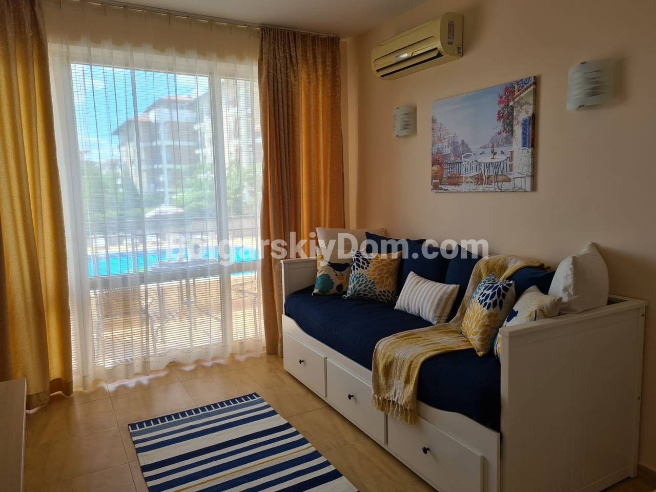 Приятный и готовый к использованию вариант от Болгарского Дома! Светлая студия в комплексе Аква Дримс в Святом Власе. Площадь 35 кв.м., одно из самых удобных расположений на 2 этаже. Квартира полностью меблирована и оборудована техникой, с удобной открытой планировкой и просторной террасой, откуда открывается вид на бассейн. Прекрасный рентный потенциал, отличное техническое и эстетическое состояние.