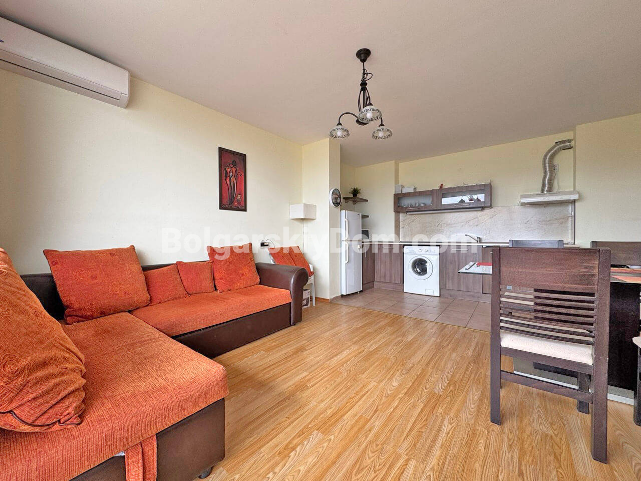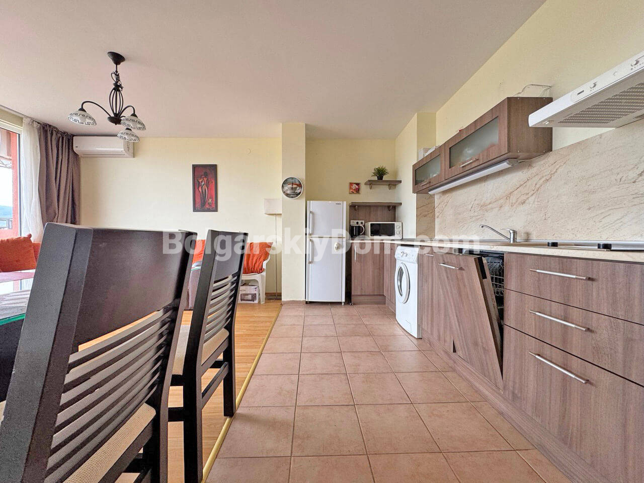 Пополнение каталога: уютная двухкомнатная квартира в Холидей Форт Гольф Клуб на Солнечном Берегу! Жилье площадью 64 кв.м. полностью готово к заселению или сдаче в аренду. Апартамент расположен на четвертом этаже, продается вместе с мебелью и бытовой техникой. Внутри грамотно распределено пространство: светлая гостиная с кухонным блоком, отдельная спальня и просторный балкон с видом на ухоженную территорию. Это отличное решение для семейного отдыха в экологически чистом районе курорта.
