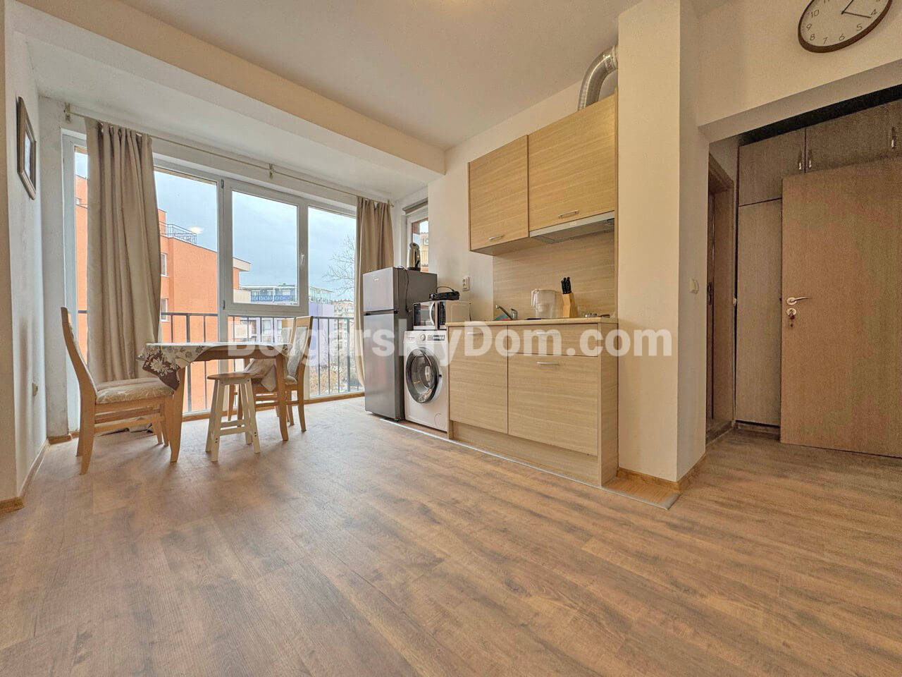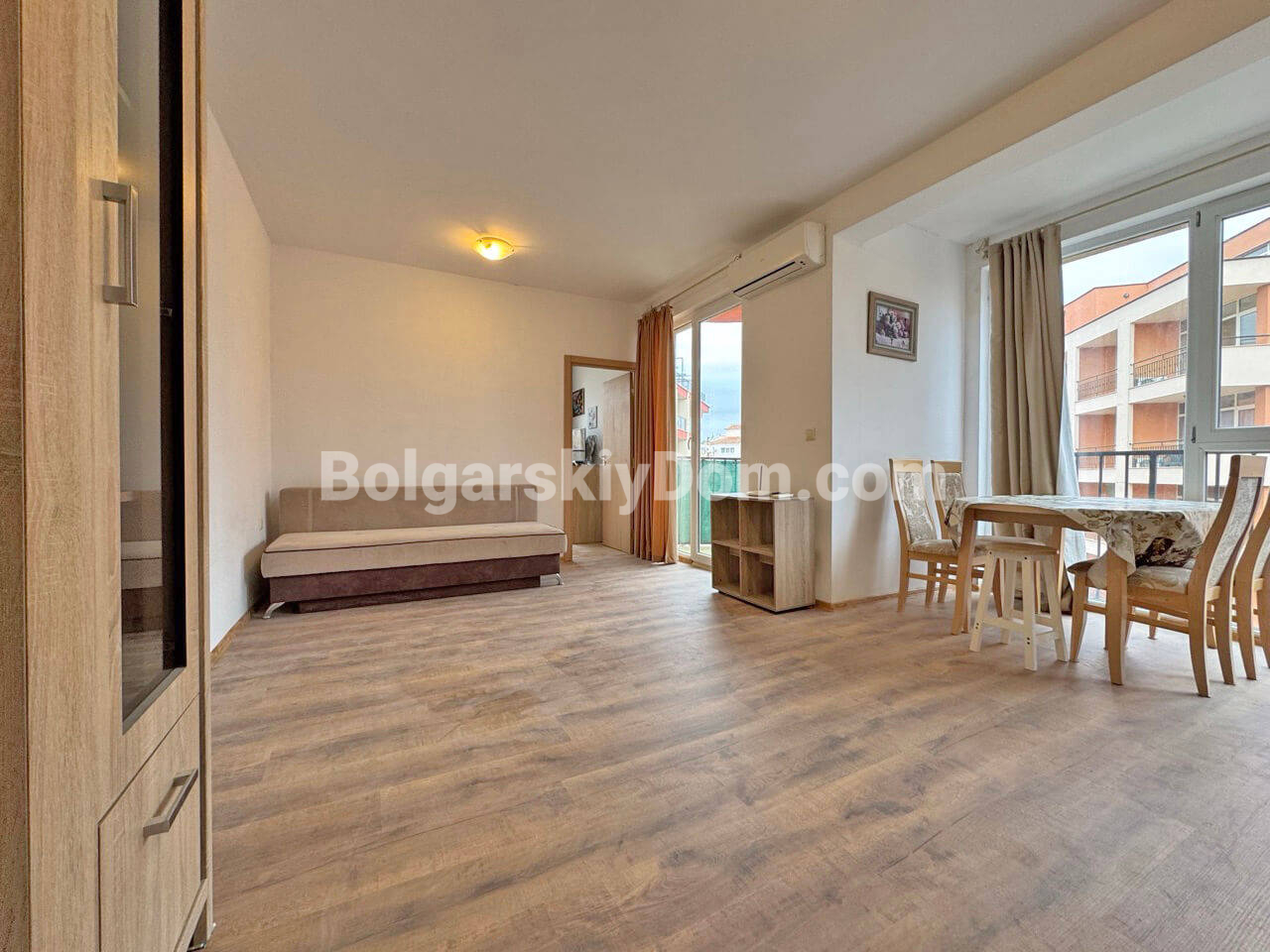 Команда Болгарский Дом презентует отличный вариант возле Какао Бич - меблированная двушка в Сани Вью Централ! Квартира площадью 55 кв.м. расположена на четвертом этаже современного здания (всего их шесть). Внутри есть вся необходимая техника и мебель. Просторная гостиная плавно переходит в обеденную зону. Спальня изолирована. Из окон виден ухоженный двор. Балкон с видом на территорию. Очень светлый, приятный интерьер, планировка с полноразмерной прихожей, оборудованной гардеробной частью. Отличная стоимость!