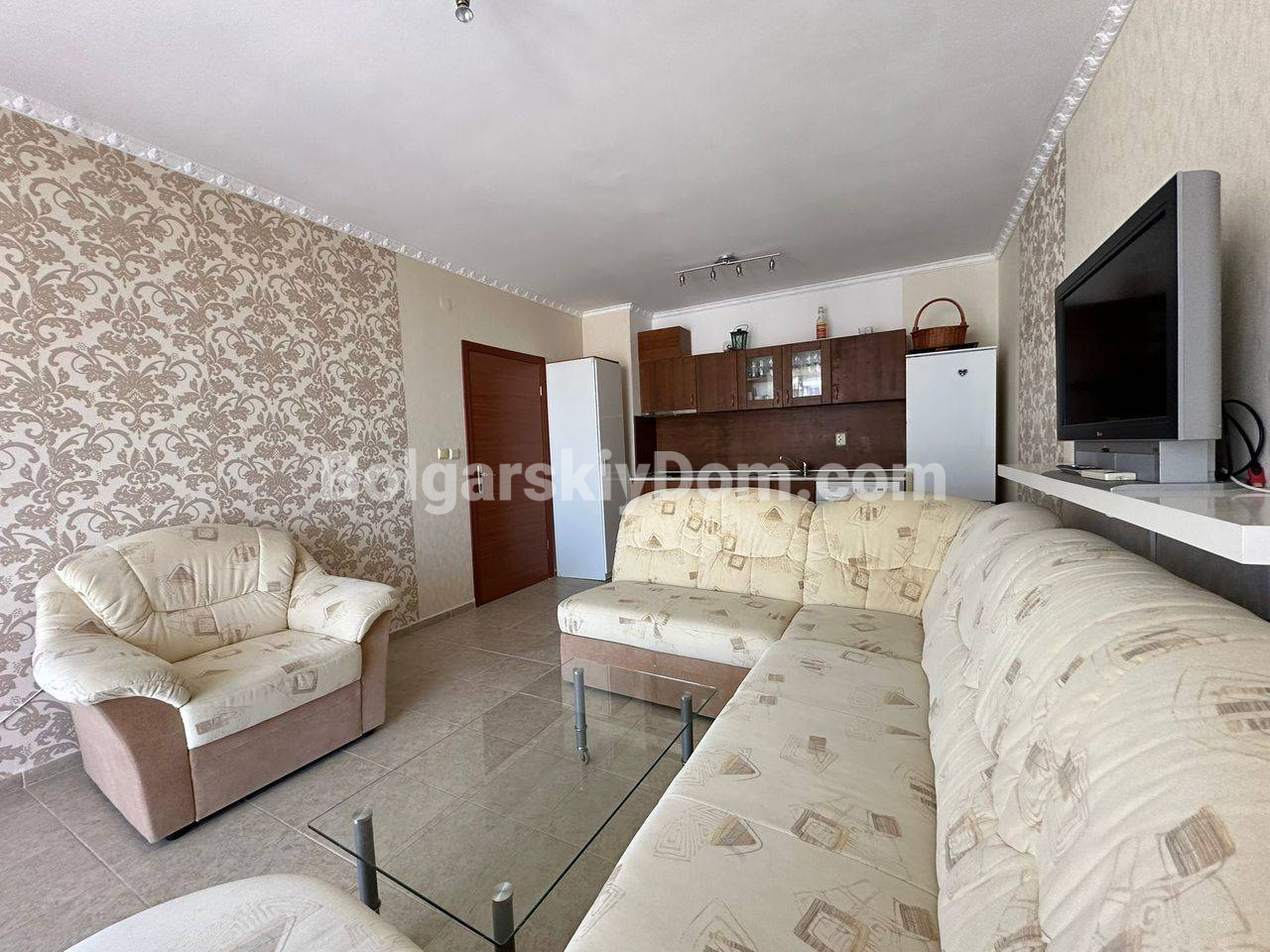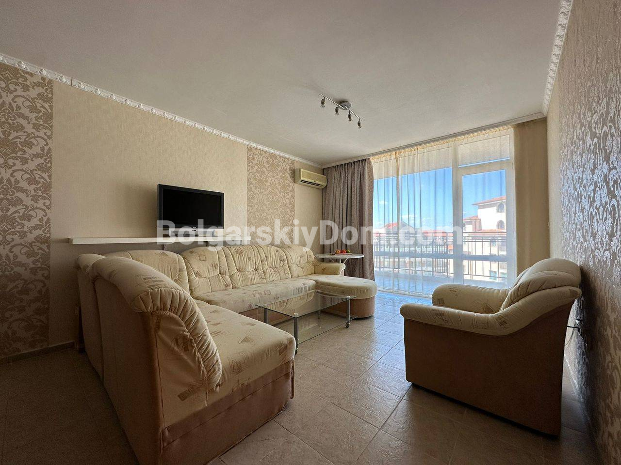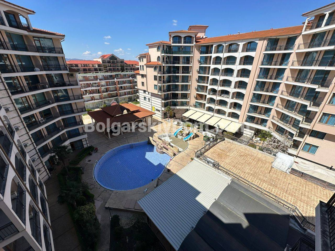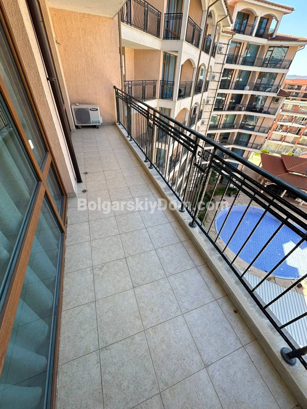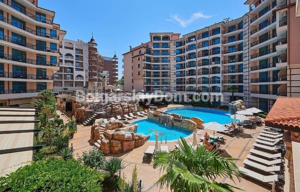 Новинка в южной части Солнечного Берега! Уже с сегодняшнего дня вы можете купить просторную квартиру площадью 64 квадратных метра на шестом этаже комплекса Каролина. Главный плюс верхнего уровня - отсутствие соседей над головой и полная тишина. Внутри вас ждет уютная спальня с широкой кроватью и светлая гостиная. Весь набор мебели и бытовой техники остается новым владельцам, поэтому вы сможете переехать сразу. Личный балкон открывает вид на бассейн, создавая правильную атмосферу для вечернего отдыха.