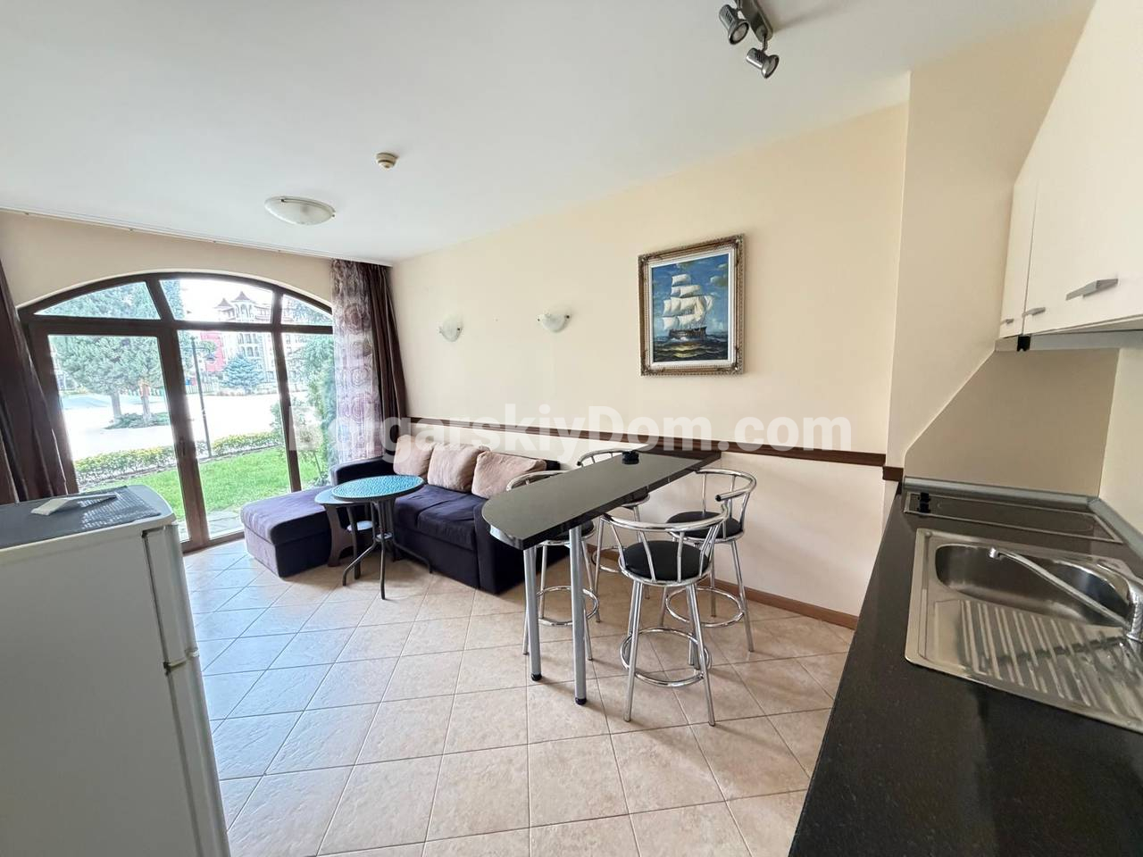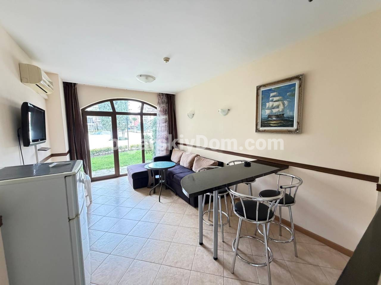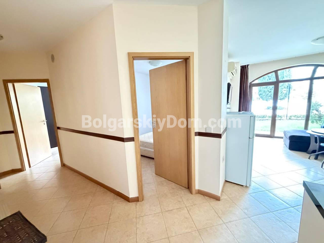 Пополнение каталога от Болгарского Дома! Просторная трехкомнатная квартира с большим собственным двором в комплексе Роял Сан на Солнечном Берегу. Площадь 80 кв.м., максимально удобное расположение на первом этаже. Квартира полностью меблирована и оборудована техникой. Планировка функциональная: светлая гостиная с кухонной зоной, две отдельные спальни, два санузла с ванной и туалетом, а также выход на большую террасу прямо в собственный двор. Это настоящий плюс для семей с детьми или тех, кто любит проводить время на свежем воздухе.