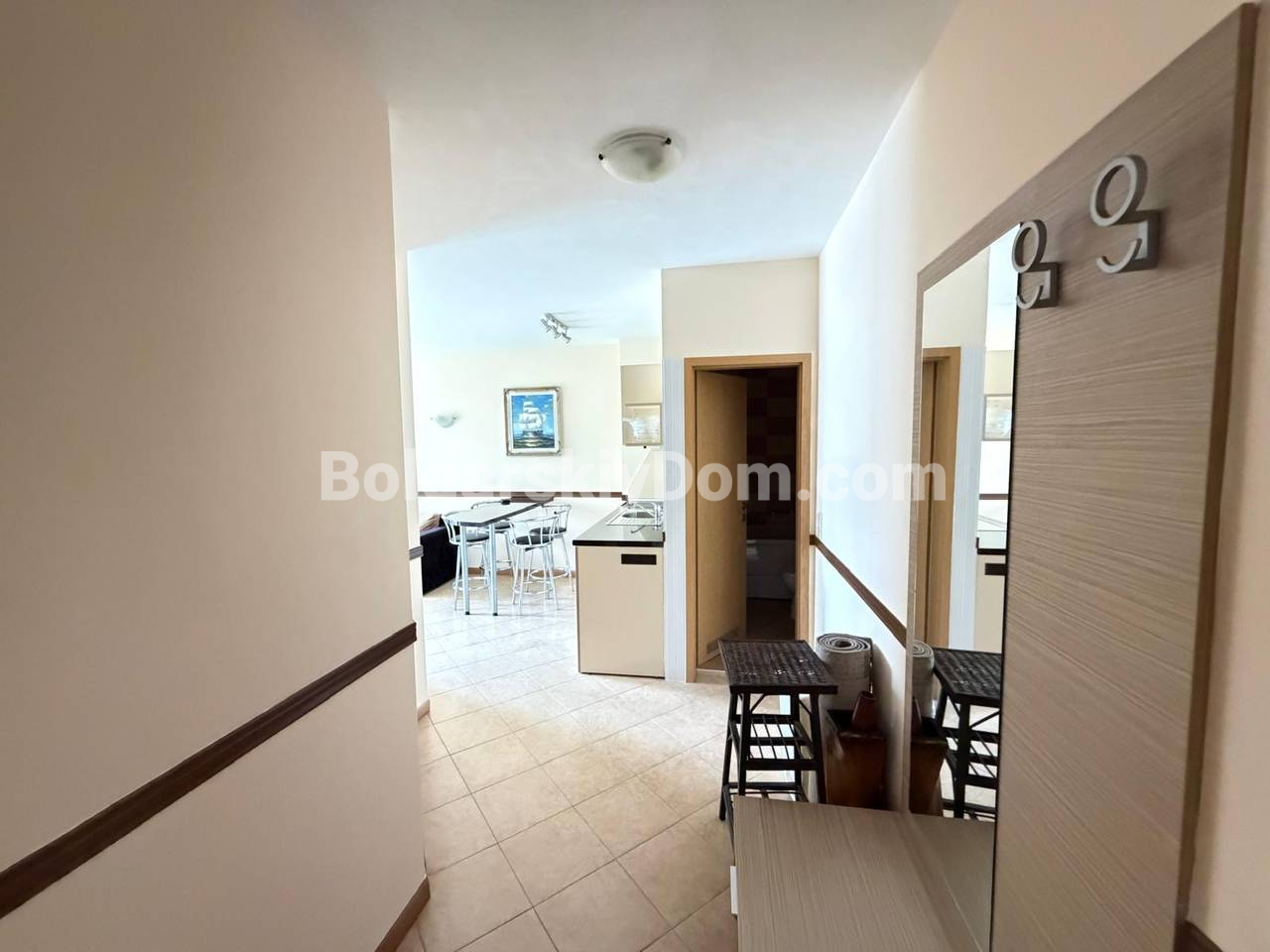 ЖК Роял Сан - ухоженный закрытый комплекс с большим открытым бассейном, рестораном, баром, детской площадкой, супермаркетом, парковкой и круглогодичной охраной. Расположен в удобной части курорта - всего 200 метров до песчаного пляжа, широкого, с пологим спуском и золотистым песком. Рядом аквапарк, магазины, кафе и остановки транспорта. Есть Акт 16. Такса обслуживания 21 евро за кв.м. в год. Компания Болгарский Дом пришлет актуальные фото и видео, организует просмотр в удобное для вас время. Пишите или звоните!