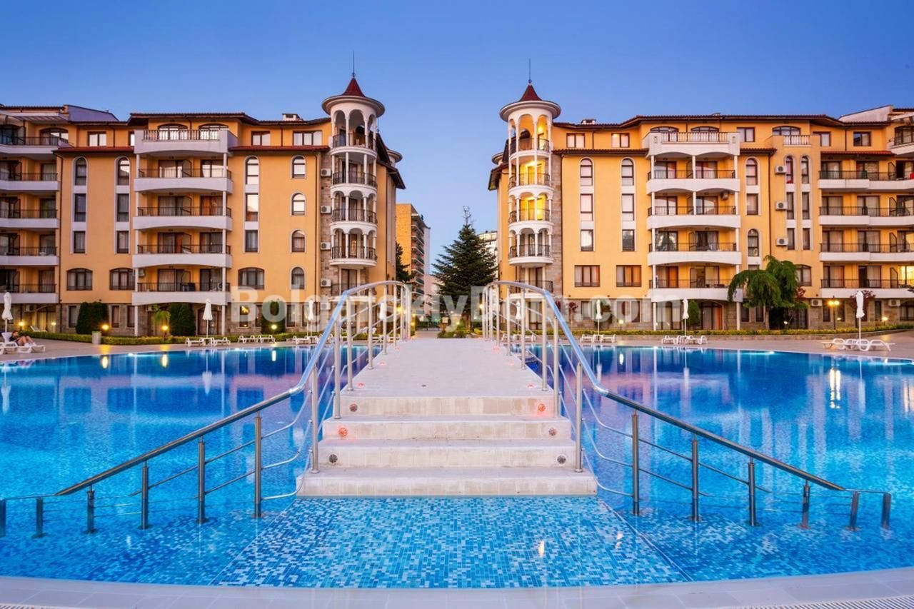 Инфраструктура объекта считается одной из самых богатых на Солнечном Берегу. В вашем распоряжении два больших бассейна, профессиональный СПА-центр с джакузи, солярием и фитнес-зал. На закрытой территории работают медицинский центр, супермаркет, торговый комплекс и ресторан. Для детей предусмотрены игровые площадки и анимация. До песчаного пляжа всего семь минут пешком. Здание имеет Акт 16 и охраняется круглый год, предусмотрена парковка и видеонаблюдение. Такса поддержки составляет 21 евро за метр. Эксперты АН Болгарский Дом обеспечат проверку документов и полное сопровождение сделки. Звоните для организации показа.