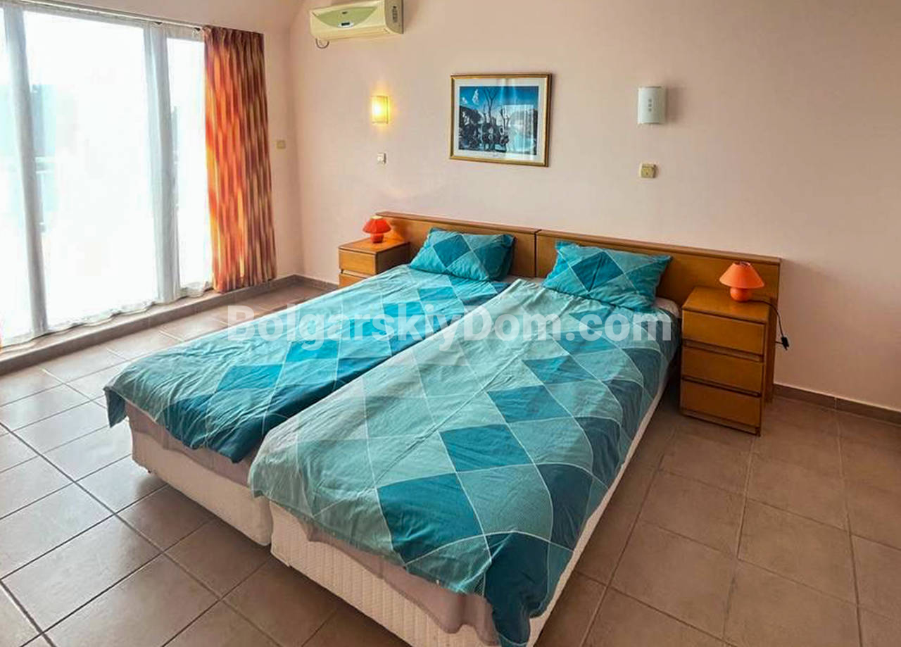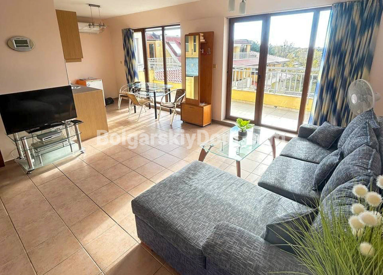 Топовая недвижимость - только в АН Болгарский Дом! Полноценная курортная жизнь в масштабном комплексе Роял Сан начнется у счастливого обладателя сразу после покупки этой просторной квартиры площадью 92 квадратных метра в ЖК Роял Сан! Вы забираете полностью готовое жилье на шестом этаже,планировка которого включает две светлые спальни, вместительную гостиную и редкое преимущество для болгарского побережья - санузел с полноценной ванной. Главным местом для отдыха станет огромный балкон, на котором легко обустроить лаунж-зону под открытым небом. Вся мебель и техника уже входят в стоимость.