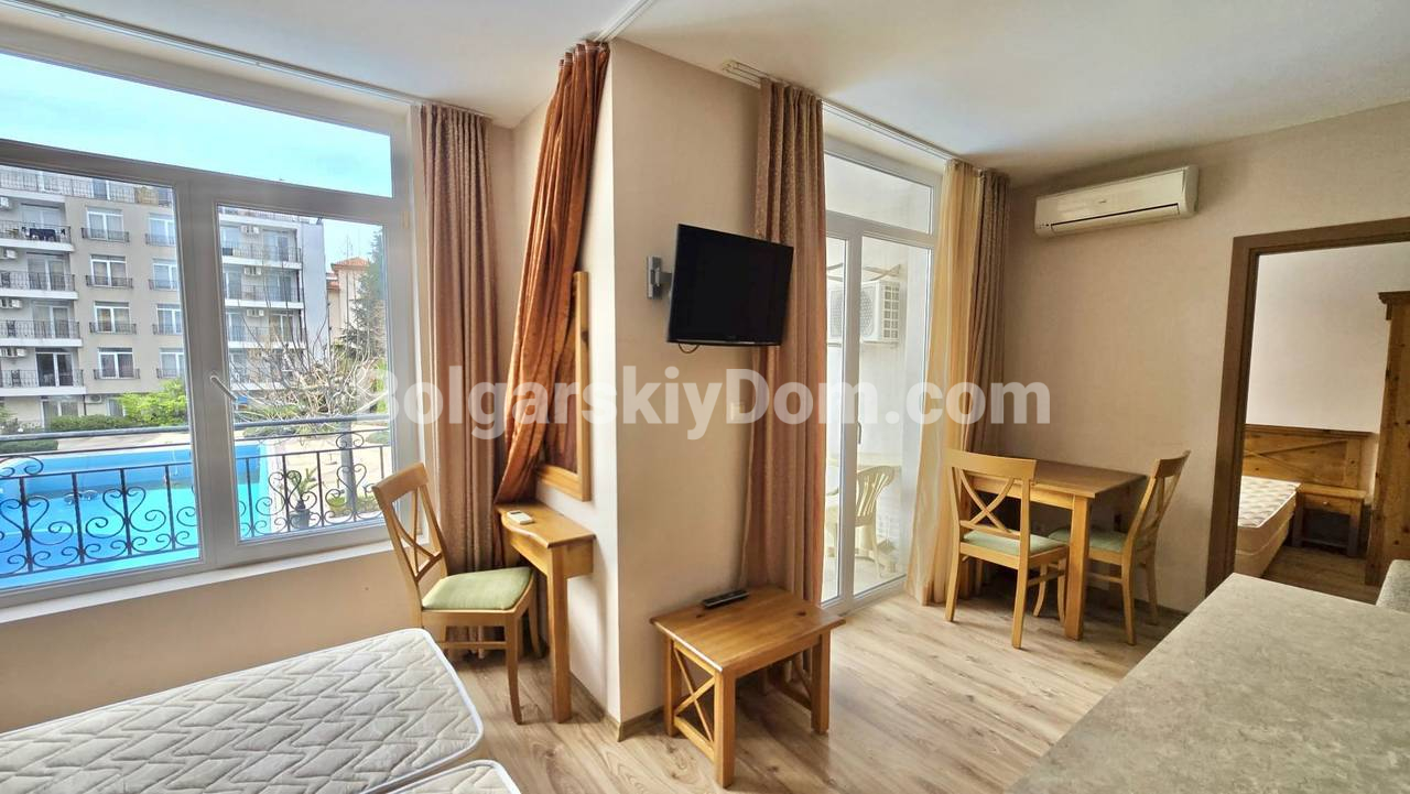 Вниманию клиентов Болгарского Дома! Добавляем в каталог трехкомнатную квартиру в одном из самых уютных и ухоженных комплексов Солнечного Берега - Даун Парк. Апартамент площадью 55 кв. м расположен на втором этаже и имеет редкое преимущество: наличие двух отдельных санузлов. Квартира полностью меблирована, планировка предусматривает уютную гостиную с кухонным уголком и две отдельные спальни. Из окон и с балкона открывается приятный вид на внутреннюю территорию комплекса с ландшафтным дизайном и бассейном. Объект уже оснащен необходимой бытовой техникой, включая кондиционеры, и готов к немедленному заселению.