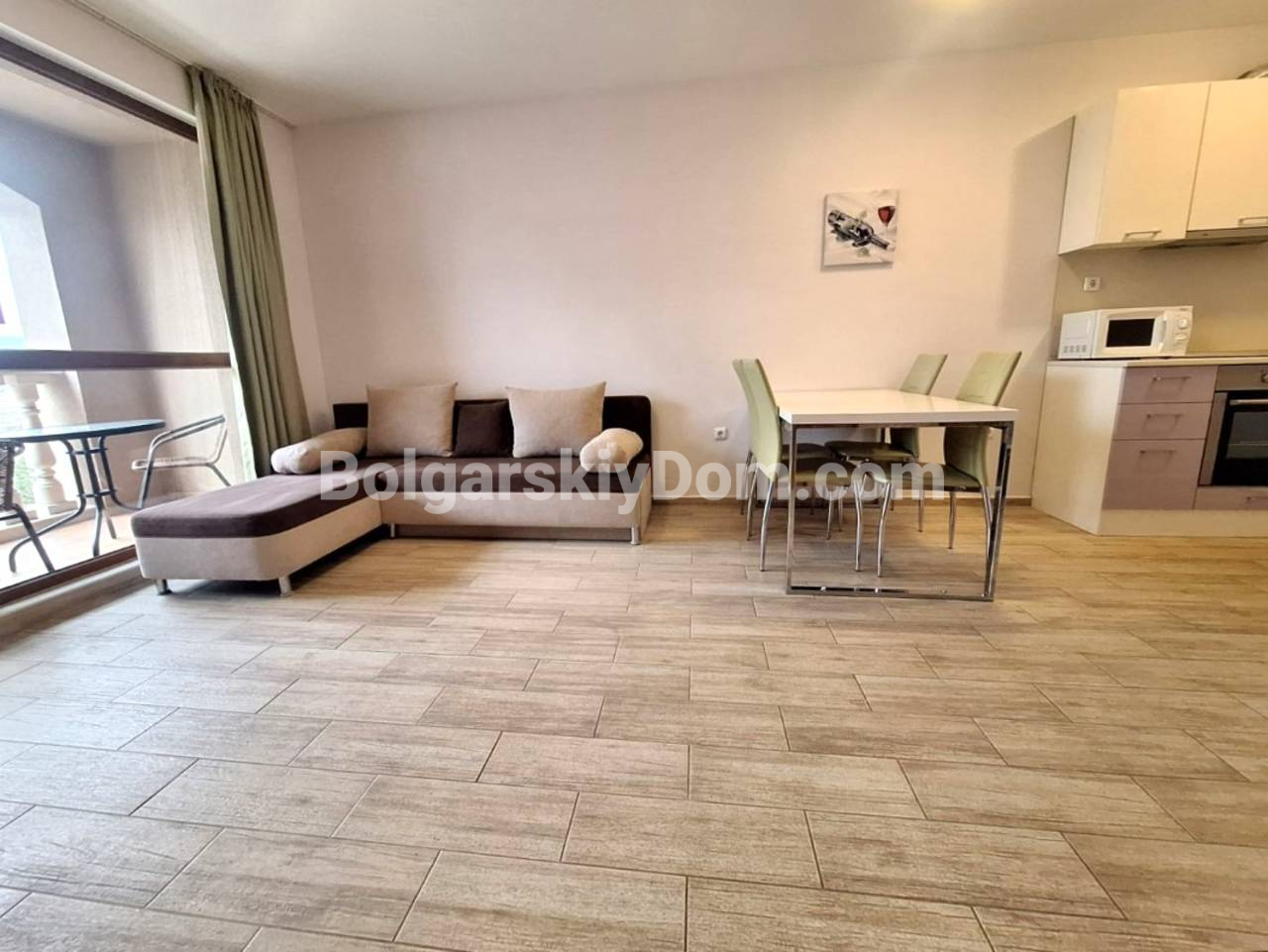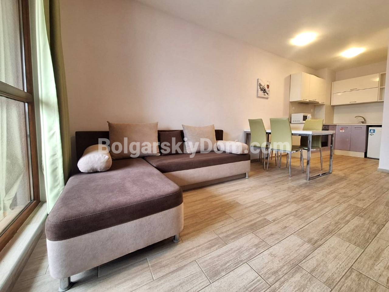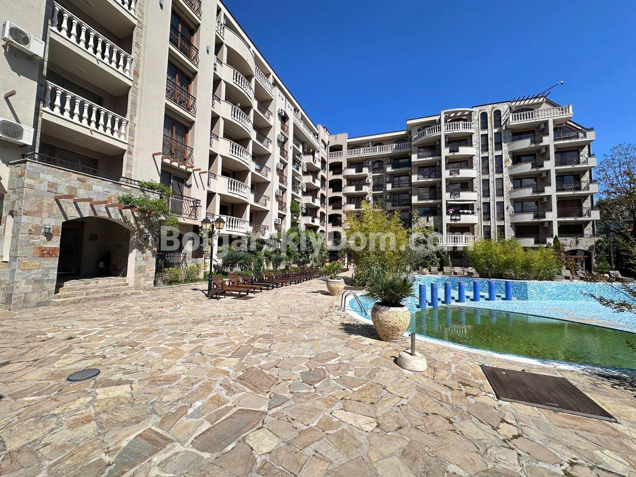 Болгарский Дом представляет функциональное решение в одном из самых узнаваемых проектов побережья - Каскадас Фемили Резорт. В продаже двухкомнатная квартира площадью 57 кв.м. на пятом этаже, окна которой выходят на благоустроенную внутреннюю территорию с бассейном. Планировка включает прихожую, светлую гостиную с кухонной нишей и обеденной зоной, отдельную спальню, санузел и уютную террасу. В апартаменте выполнен качественный ремонт и установлена мебель по индивидуальному проекту, а наличие всей необходимой техники и кондиционеров в каждой комнате позволяет переехать сразу после оформления сделки.