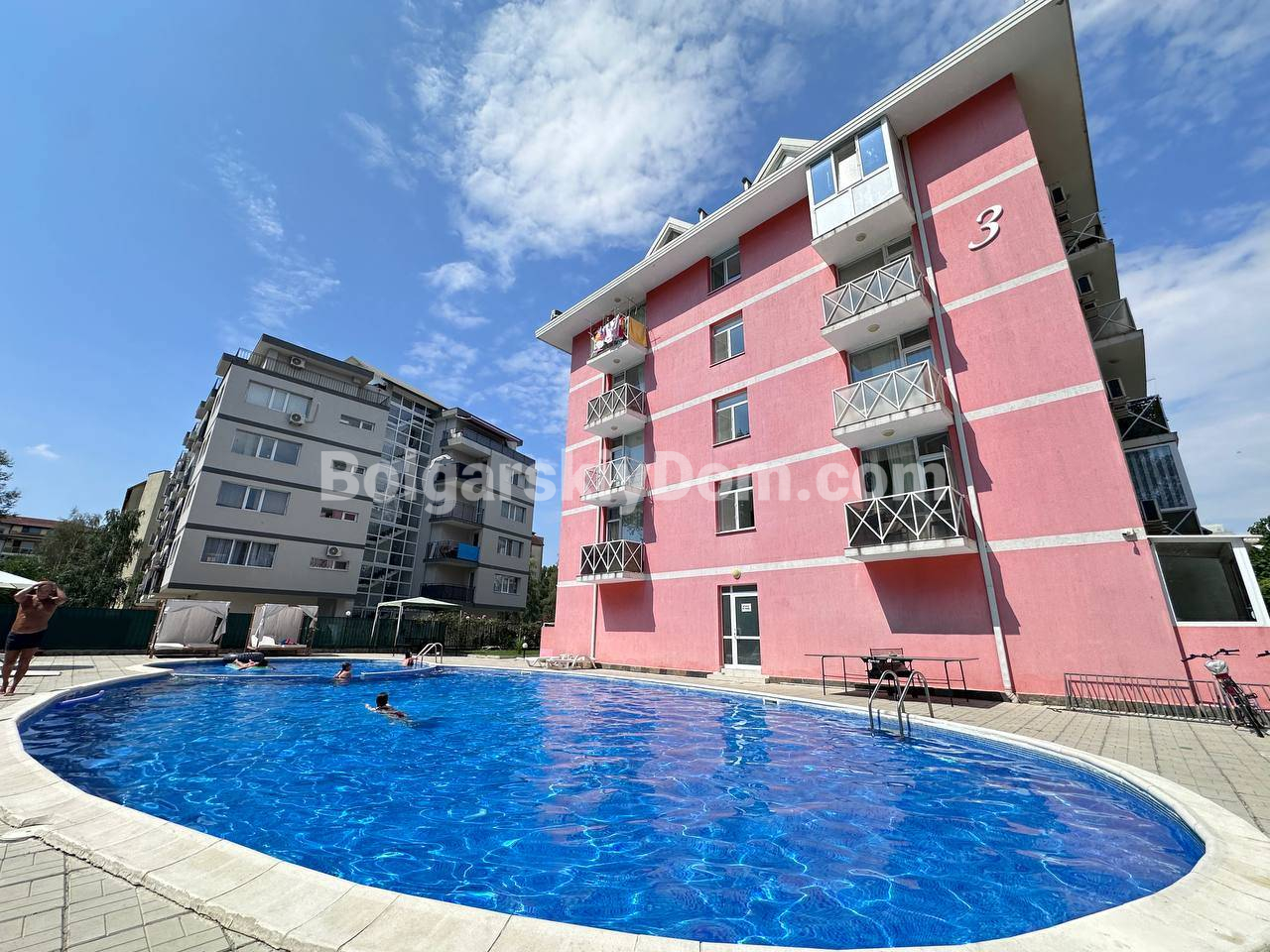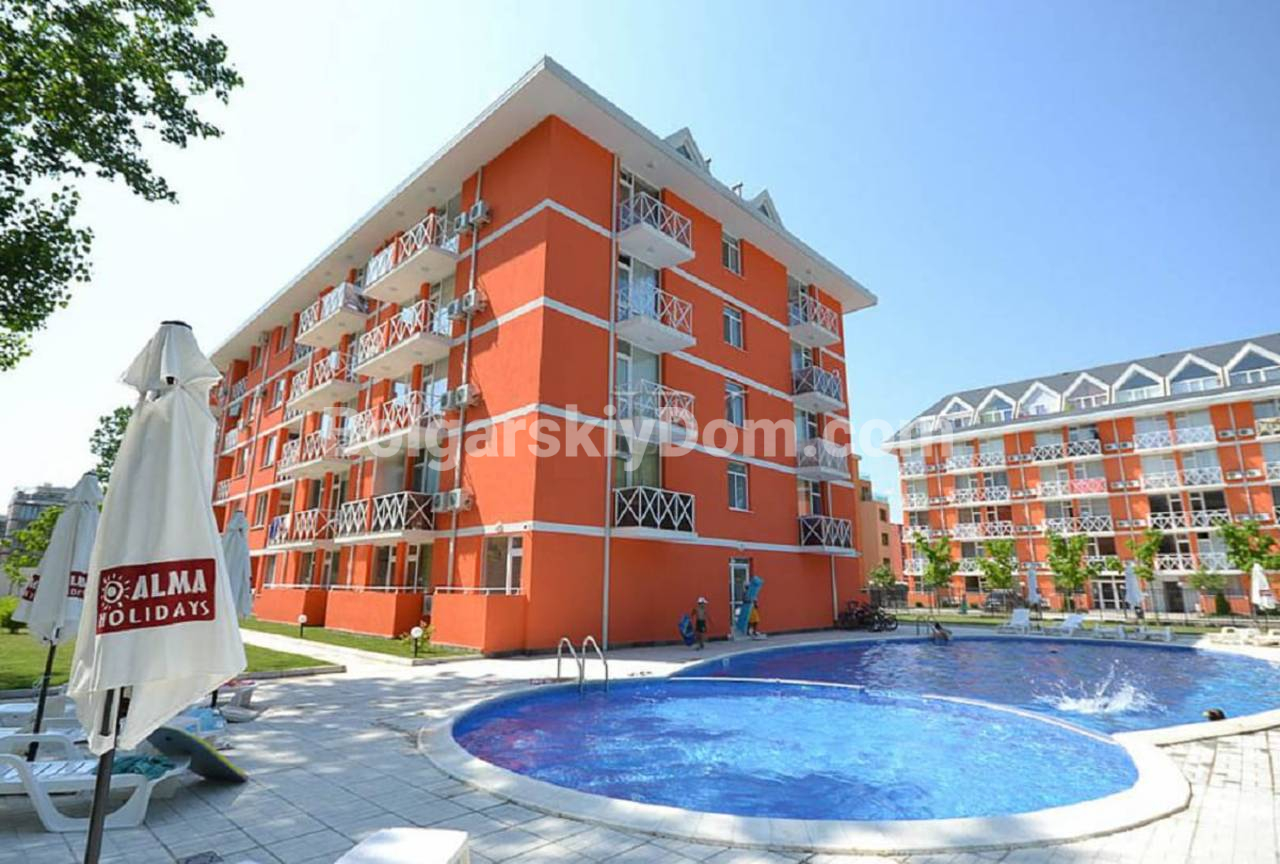 Комплекс обеспечивает жильцам приватность и комфорт благодаря закрытой территории с бассейном, детской секцией и ухоженным садом. До песчаного пляжа можно дойти пешком всего за 10 минут, преодолев около 400 метров. В шаговой доступности находятся супермаркеты, автобусные остановки и аквапарк Солнечного Берега. Здание имеет Акт 16, а безопасность собственников гарантируется круглогодичной охраной и наличием портье. Этот формат недвижимости пользуется стабильным спросом благодаря удачному сочетанию цены и развитой курортной инфраструктуры.