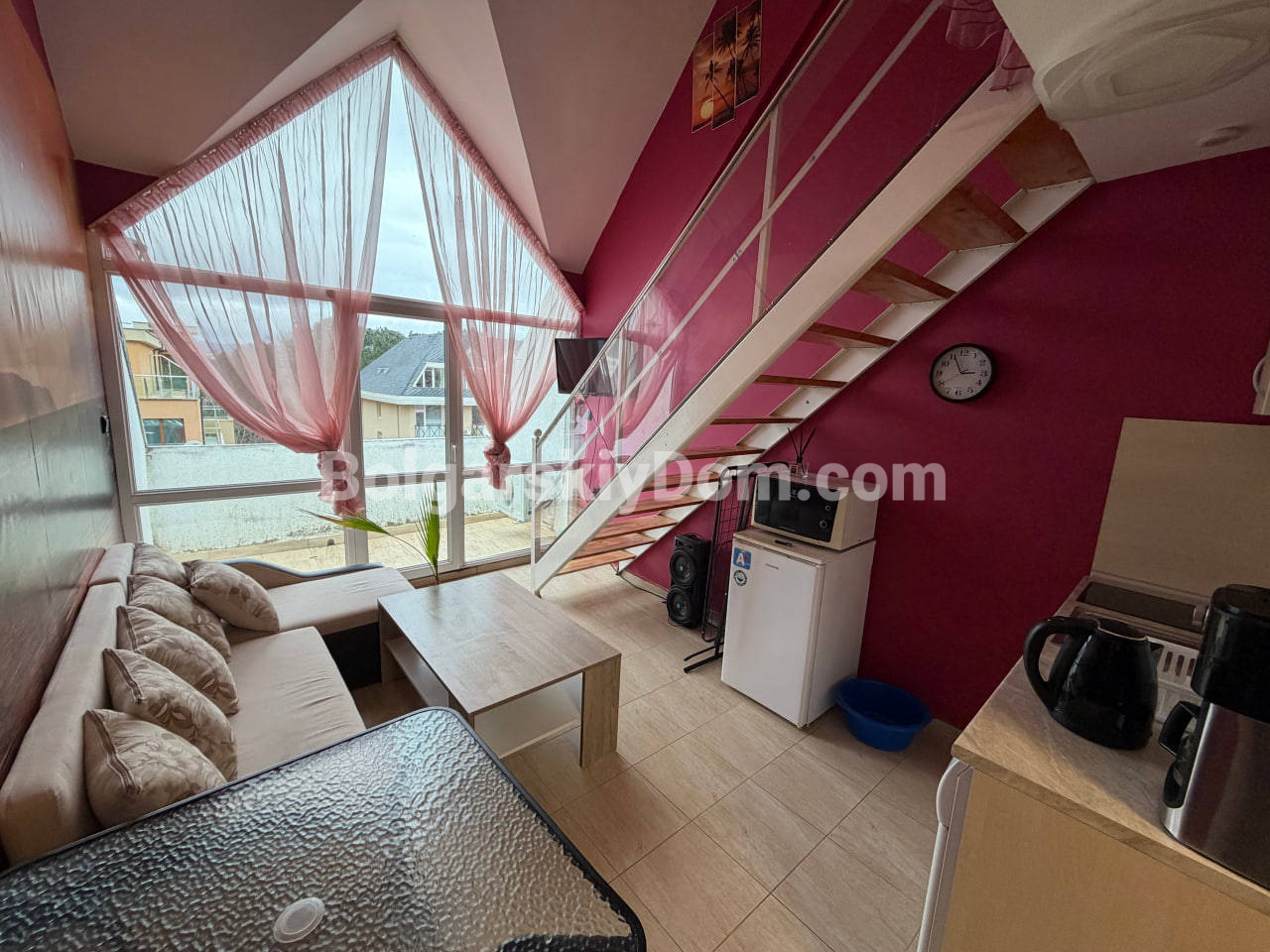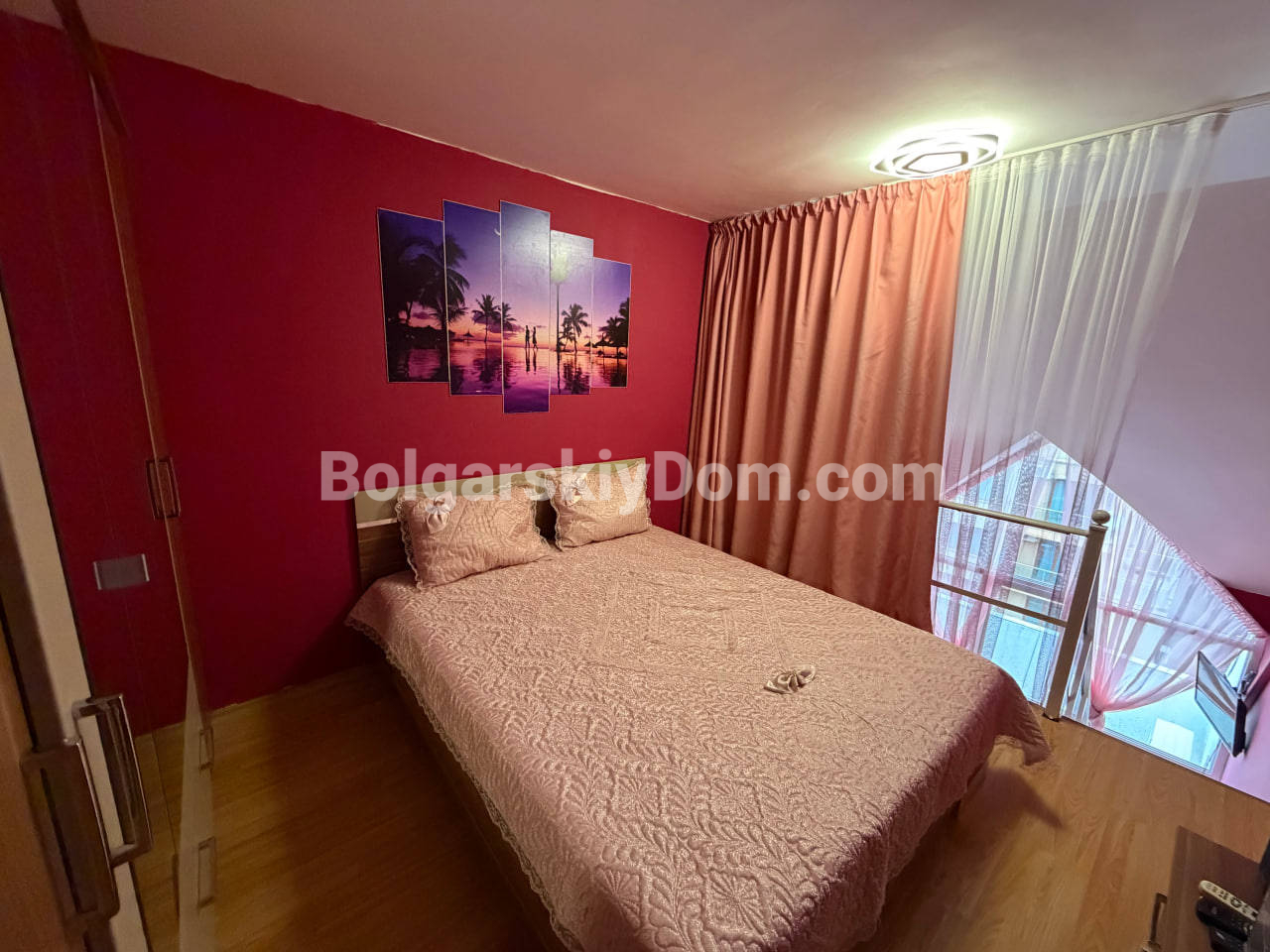 Чудесный формат для рентного бизнеса и проживания! Болгарский Дом представляет компактный двухкомнатный мезонет в комплексе Гербер Резиденс 3, расположенном в тихой части курорта Солнечный Берег. Квартира площадью 42 кв.м. находится на шестом этаже здания с лифтом и отличается интересным двухуровневым распределением: на первом ярусе размещена гостиная с кухонным блоком и выходом на просторную террасу, на втором - изолированная спальня. Объект предлагается с полным набором мебели и бытовой техники, что делает его готовым для круглогодичного проживания или немедленной сдачи в аренду.