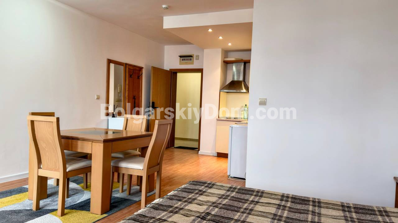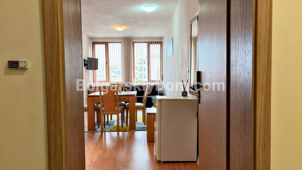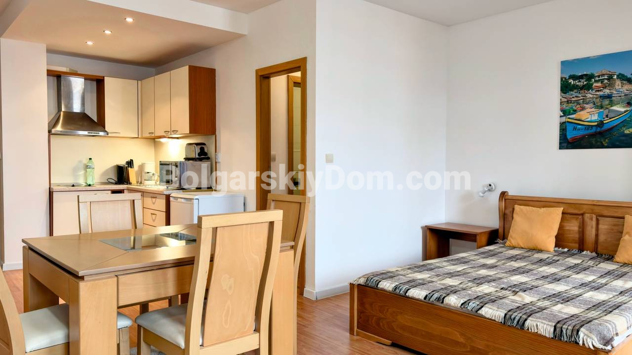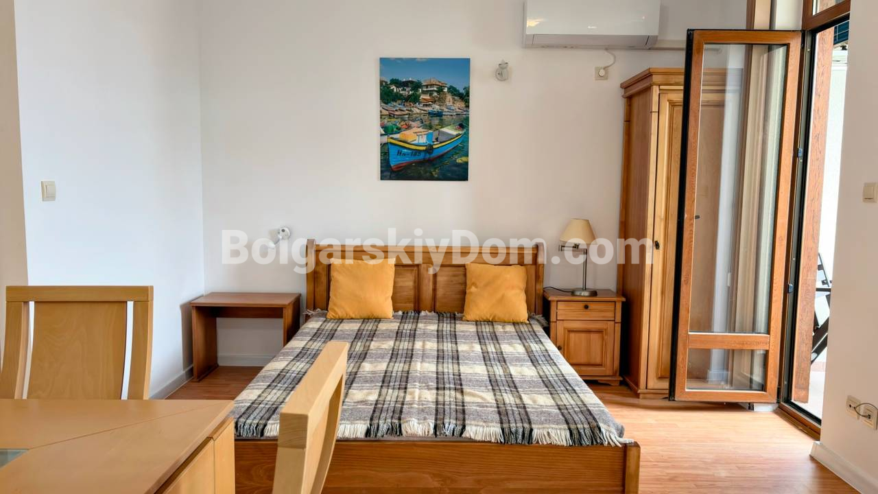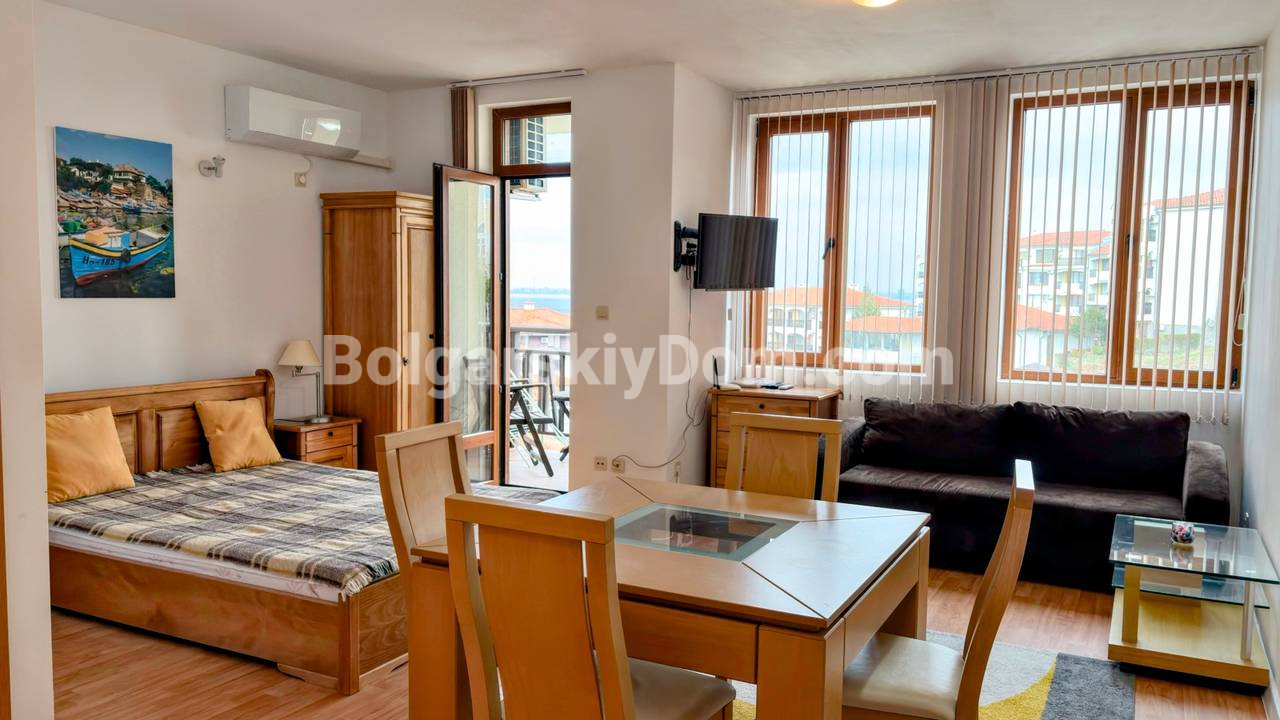 Квартира с видом на море! Открываем продажу просторной студии на первой линии в Святом Власе, комплекс Райский Сад - один из самых справедливо востребованных в городе! Площадь 46 кв.м., первый этаж, удобный доступ без лишних подъёмов, а это важный параметр для людей возрасте или семей с детьми. Пространство организовано грамотно: зона отдыха с кроватью, обеденная группа, кухня и выход на террасу с видом на море. Интерьер в спокойных тонах, много света, классическая мебель, всё выглядит аккуратно и готово к использованию. Квартира полностью укомплектована техникой, установлен кондиционер, формат под ключ без дополнительных вложений. Подходит как для личного отдыха, так и для аренды с хорошей загрузкой.