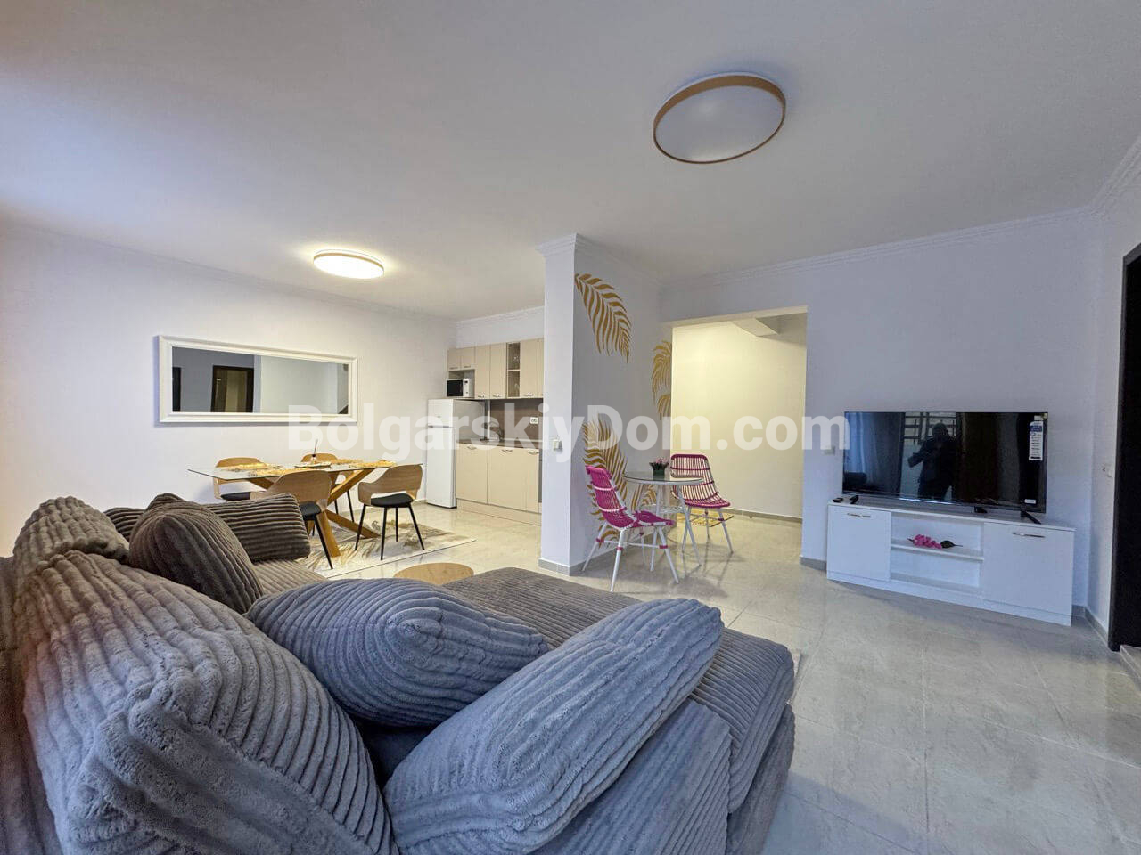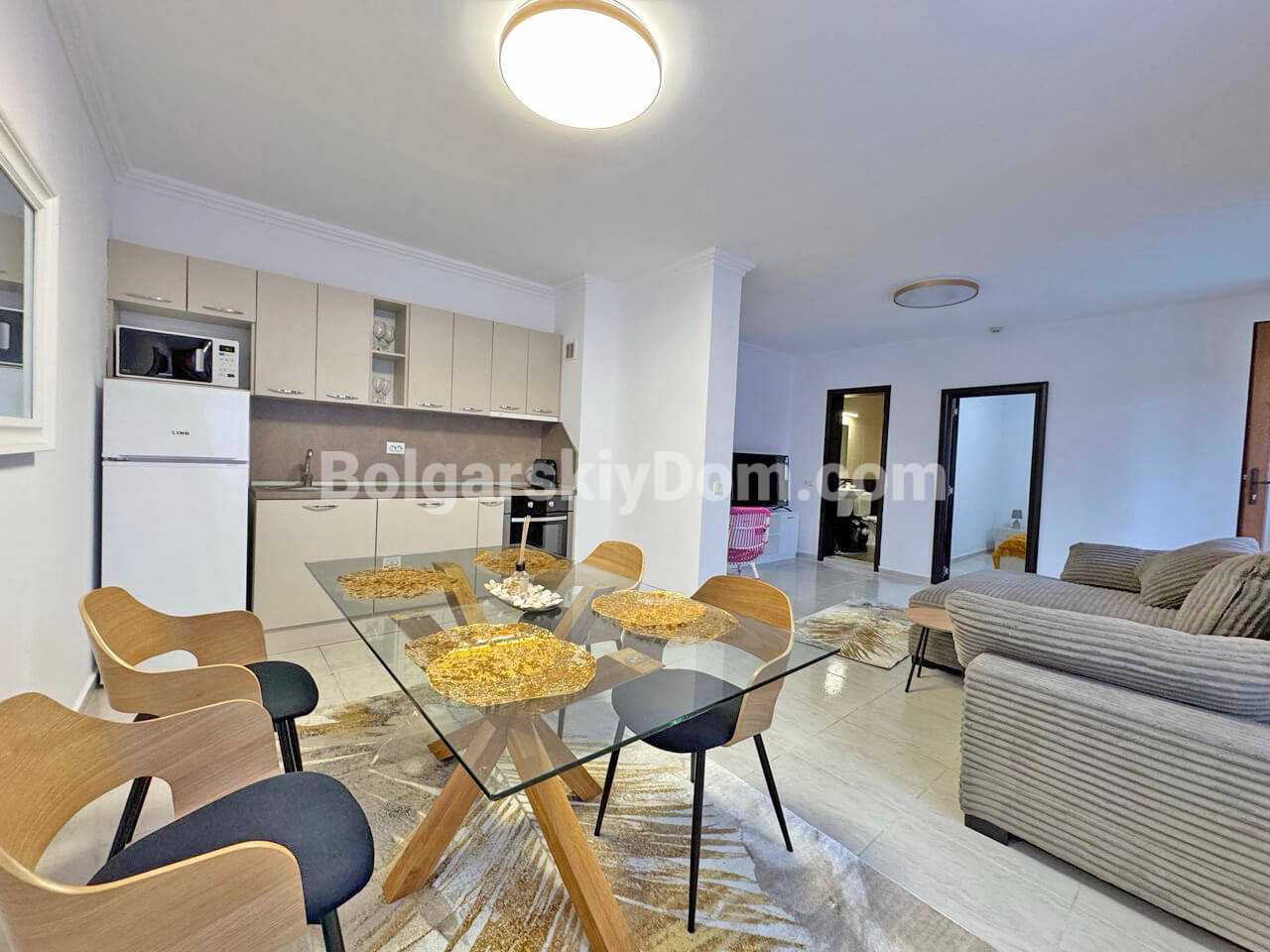 Топ-предложение в престижной локации! Агентство Болгарский Дом предлагает просторную двухкомнатную квартиру в элитном комплексе Святого Власа, всего в 200 метрах от морского побережья - ЖК Олимп. Площадь в 80 кв.м. позволяет комфортно разместить семью или принимать гостей - большая светлая гостиная с выделенной кухонной зоной, изолированная спальня, просторная ванная комната, балкон с приятным видом на окрестности. Отделка качественная, мебель современная и удобная, все работает идеально. Формат под ключ по доступной цене, в который можно переехать не медля, сразу же после совершения сделки.