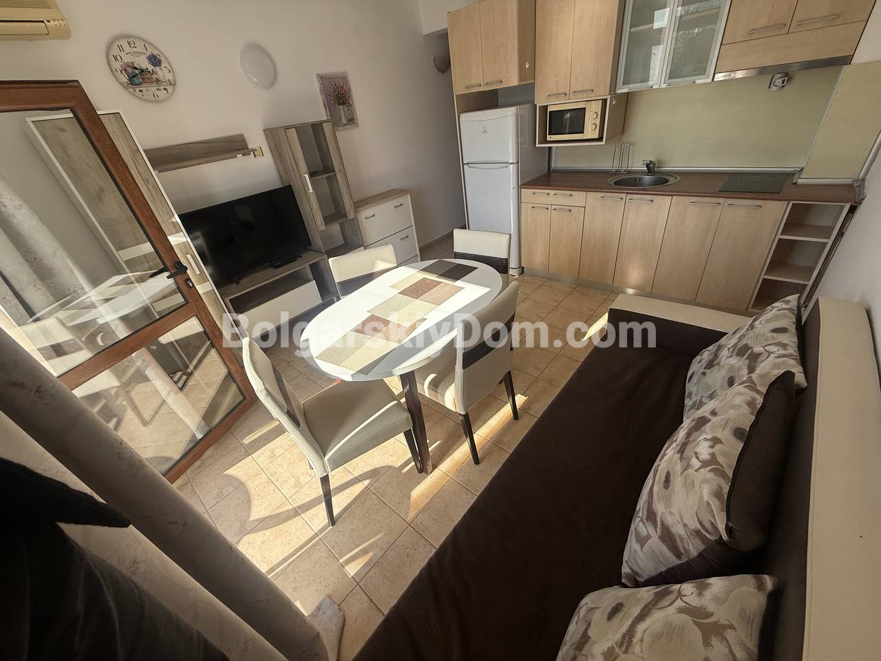 Комплекс Ялта расположен всего в 300 метрах от моря, в обжитой части Святого Власа. Территория ухоженная, есть бассейн, зоны отдыха, поддерживается порядок. Район спокойный, рядом магазины, кафе, прогулочные зоны и вся необходимая инфраструктура. Такса поддержки составляет 630 евро в год. Этот вариант - сбалансированное решение по цене, локации и условиям покупки. Ждем вашего звонка!