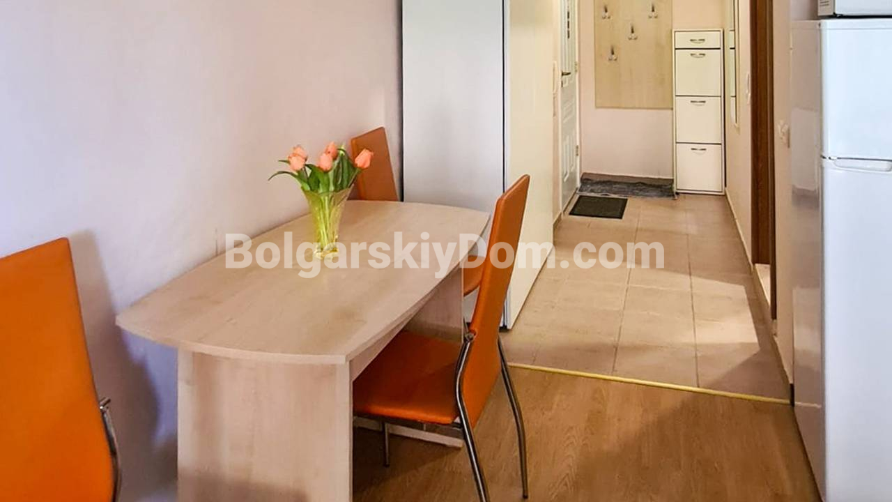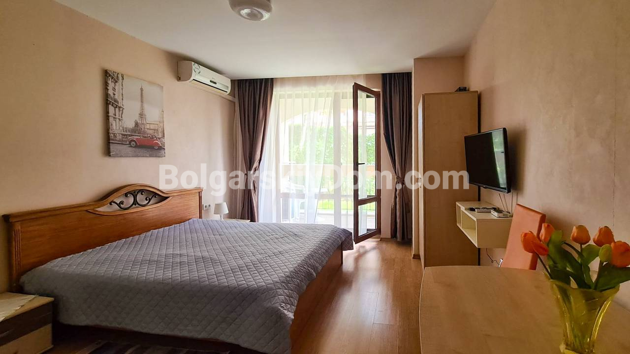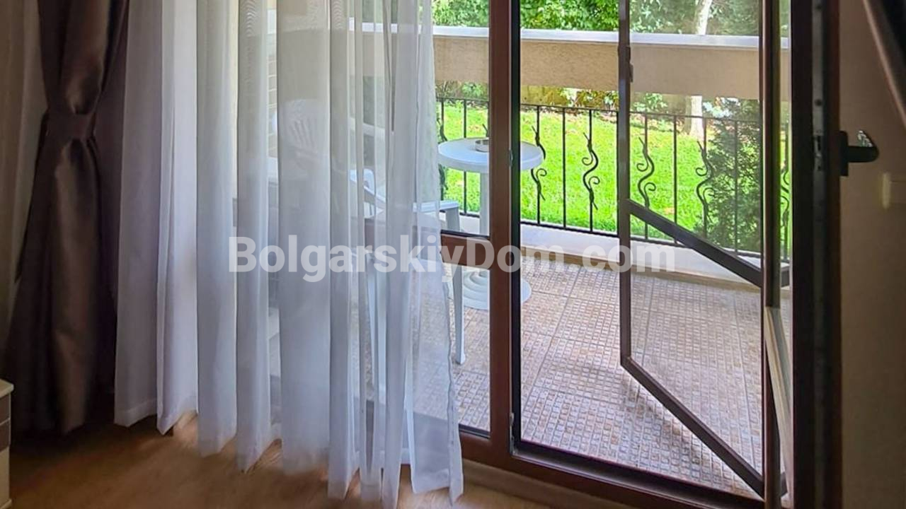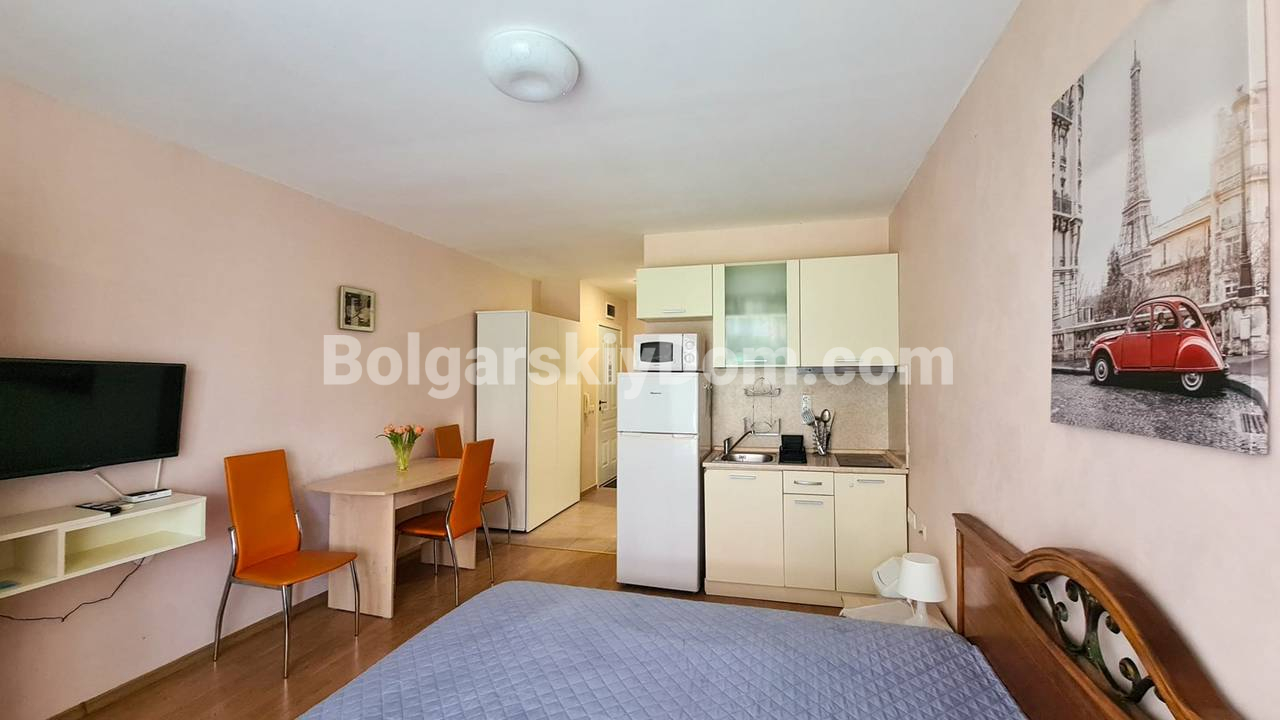 Инвестиционная недвижимость на первой линии! Агентство Болгарский Дом представляет студию в элитном комплексе Престиж Форт Бич в Святом Власе - жилье на морском побережье в одном из самых престижных курортов. Площадь 35 кв.м., расположена на первом этаже. Это компактная, но уютная квартирка: спальная зона с двуспальной кроватью, небольшая кухня с необходимой техникой, современный санузел со стиральной машиной и душевой кабиной. Мебель простая и практичная - деревянные кровати, шкафы для хранения, удобные стулья. Из окна и с балкона открывается вид на озелененную территорию комплекса и бассейны. Квартира полностью меблирована и готова к использованию. Акт 16. Такса поддержки 16 евро за кв.м в год - справедливая цена для престижного комплекса на первой линии.