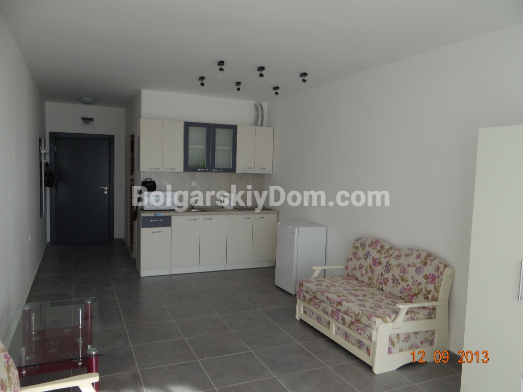 Квартира светлая, расположена на втором этаже. Из окон видно бассейн и красивый парк. Студия полностью меблирована, оборудован кондиционер. На окнах наклеена специальная защитная пленка, которая не пропускает ультрафиолетовые лучи.