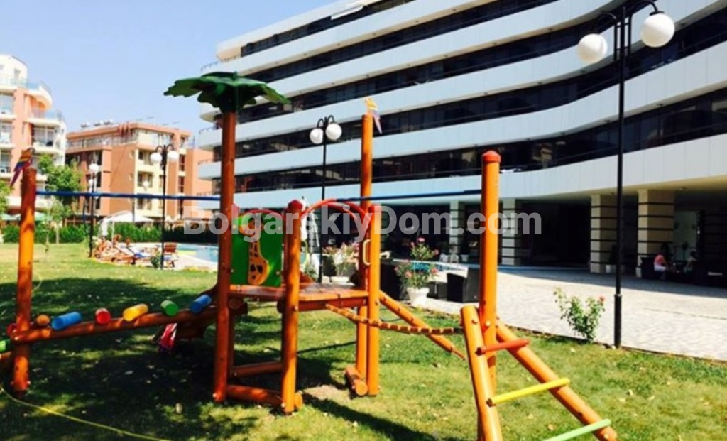 На территории: открытая и подземная парковка, два бассейна с бесплатными зонтиками и шезлонгами, детская площадка с горками и качелями, СПА салон, фитнес-зал с разнообразными тренажерами, стол для игры в настольный теннис.