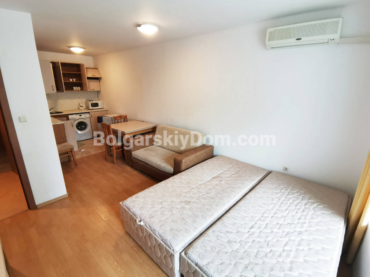 Прекрасная новинка на второй береговой линии Солнечного Берега – в комплексе Ясень, расположенном в минуте от моря! На продажу предлагается двухкомнатная квартира, расположенная на высоком первом этаже. Апартамент в прекрасном состоянии, завершен свежий косметический ремонт, установлена качественная мебель. Стоимость включает в себя новый Smart TV. Общая площадь квартиры, равная 57 кв.м., разделена на гостиную с кухней, спальню, ванную комнату с душевой и террасу, которая выходит на бассейн.