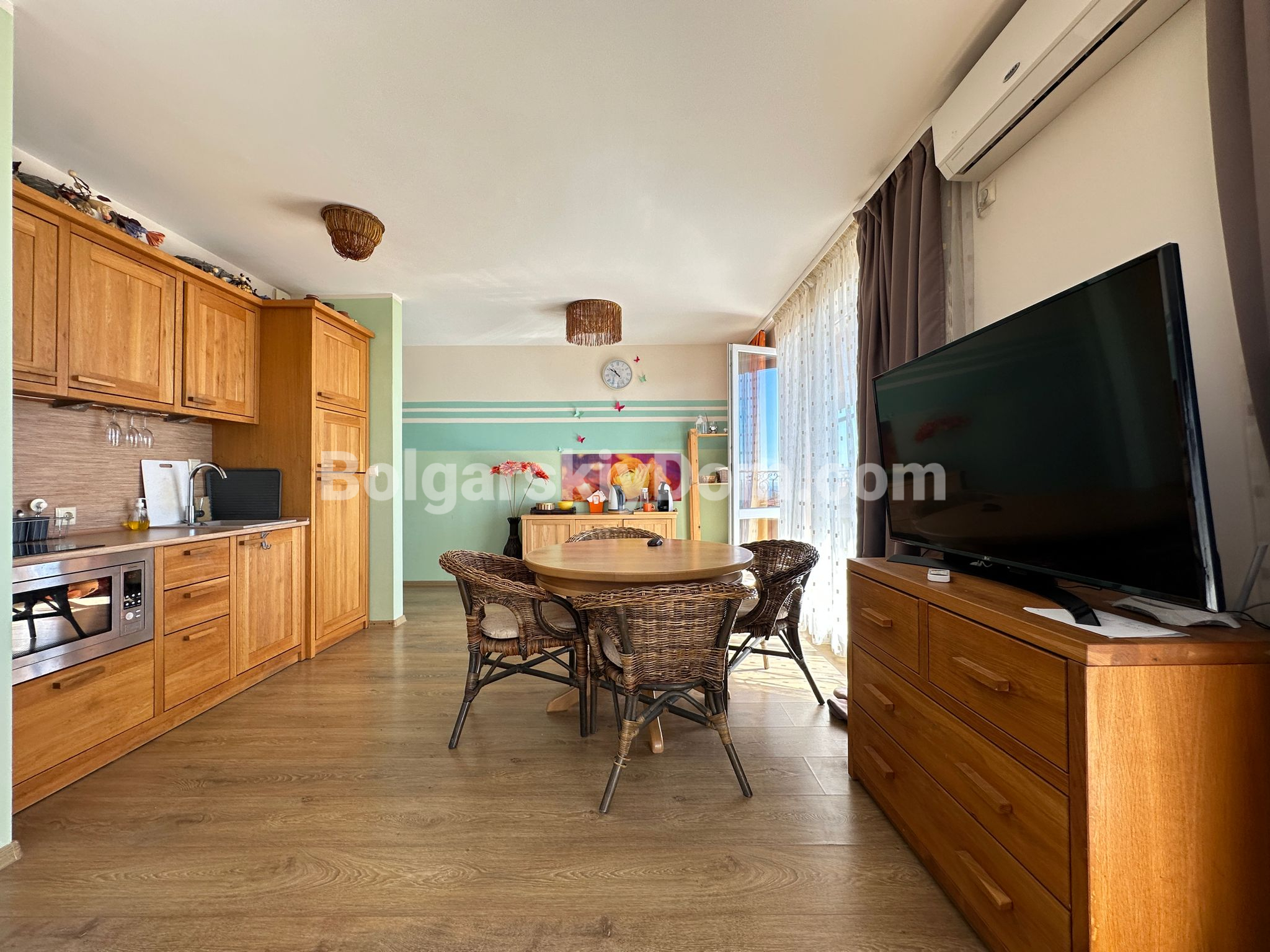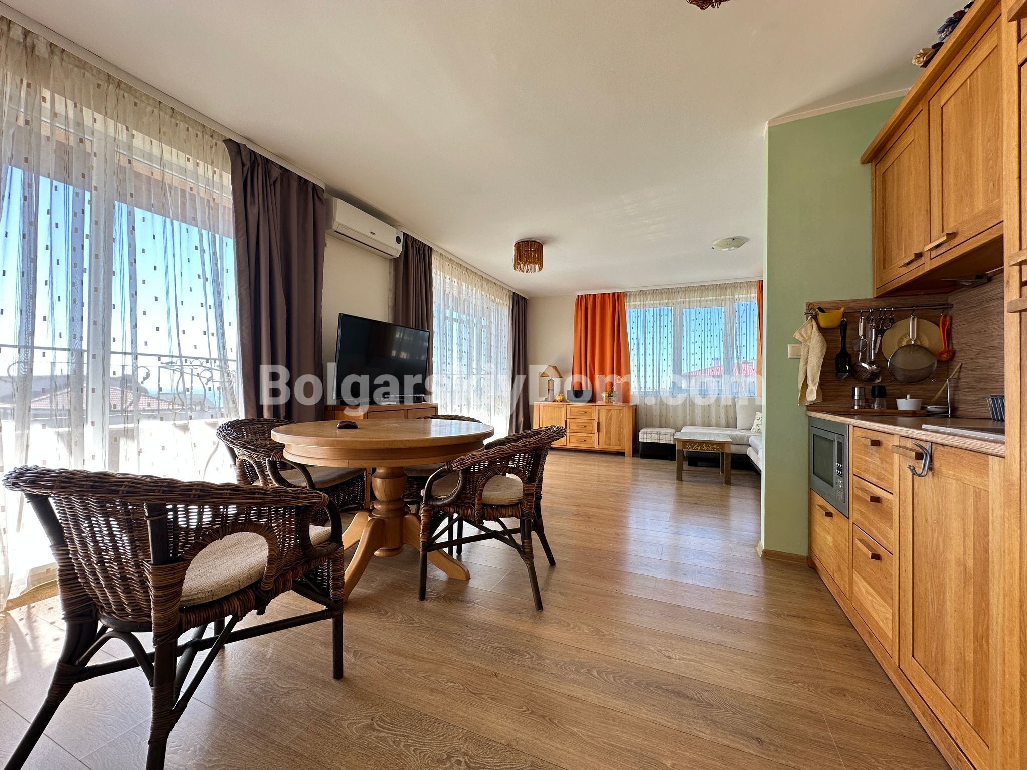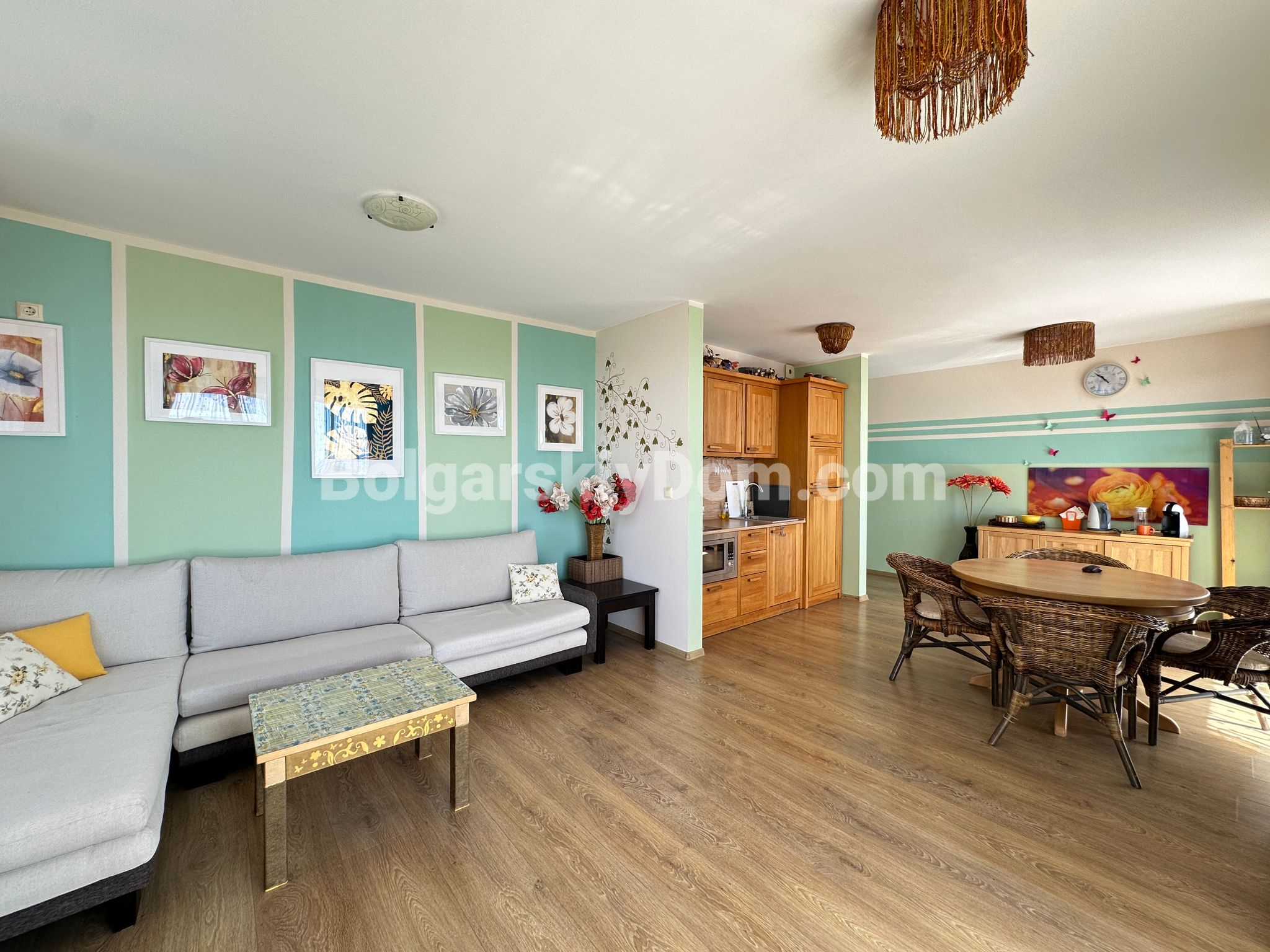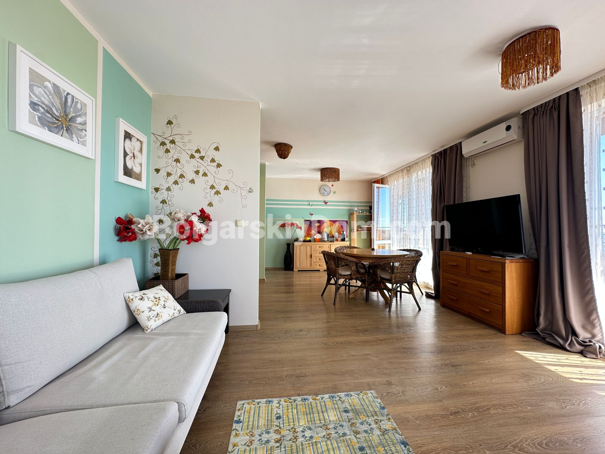 Болгарский Дом в лице команды агентов предлагает вам отличный апартамент в третьей фазе ЖК Лайфстайл, на морском курорте Равда. В продаже – квартира с видом на море: двухкомнатная, стильно обустроенная и очень просторная. Удобный второй этаж, квадратура равна 96 кв. м. Стильный интерьер, перекликающийся во всех комнатах, входит в цену.