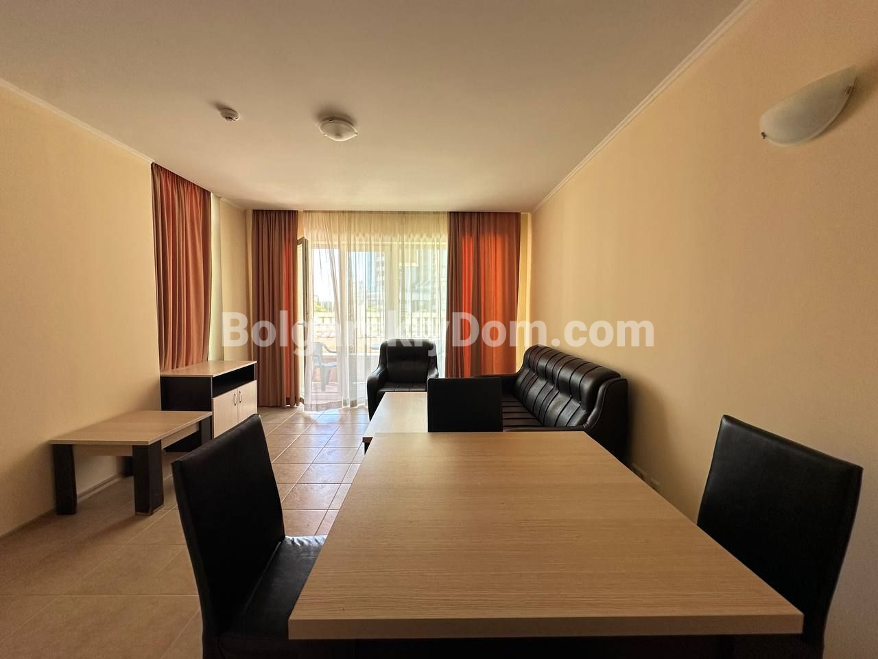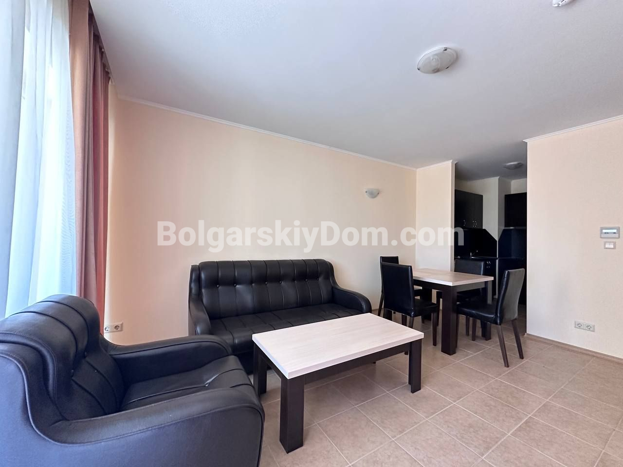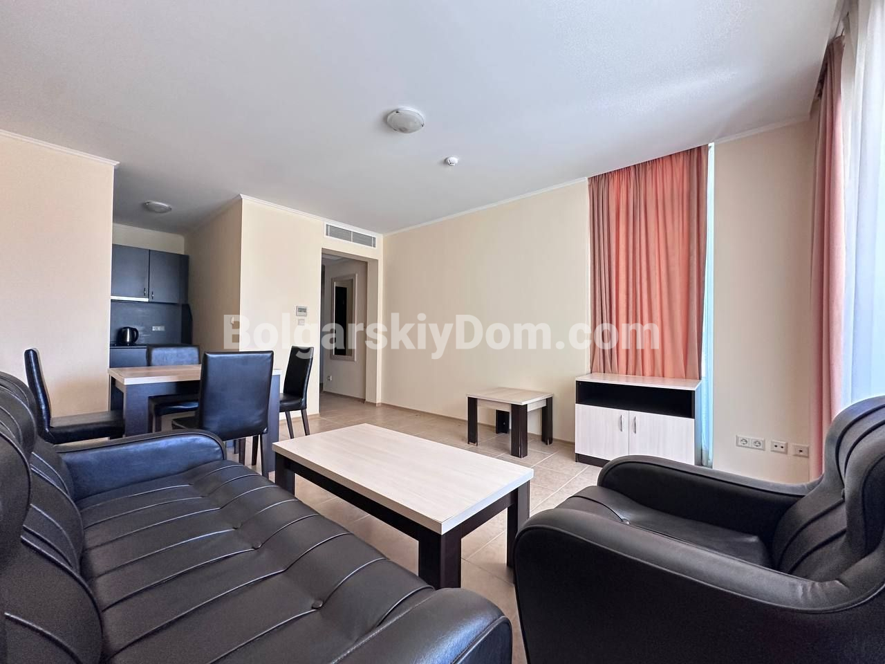 Меблированная двухкомнатная квартира в Сансет Резорт, всего в пятидесяти метрах от моря! 76 метров квадратных, первый этаж из пяти. В санузле ванна, спальня с новым комплектом мебели автономная, в гостиной удобный кухонный блок в нише и зона отдыха. Остается мебель и часть кухонной техники, ремонт в хорошем состоянии.