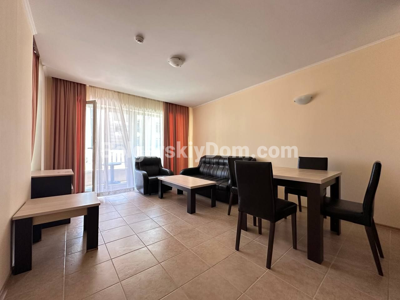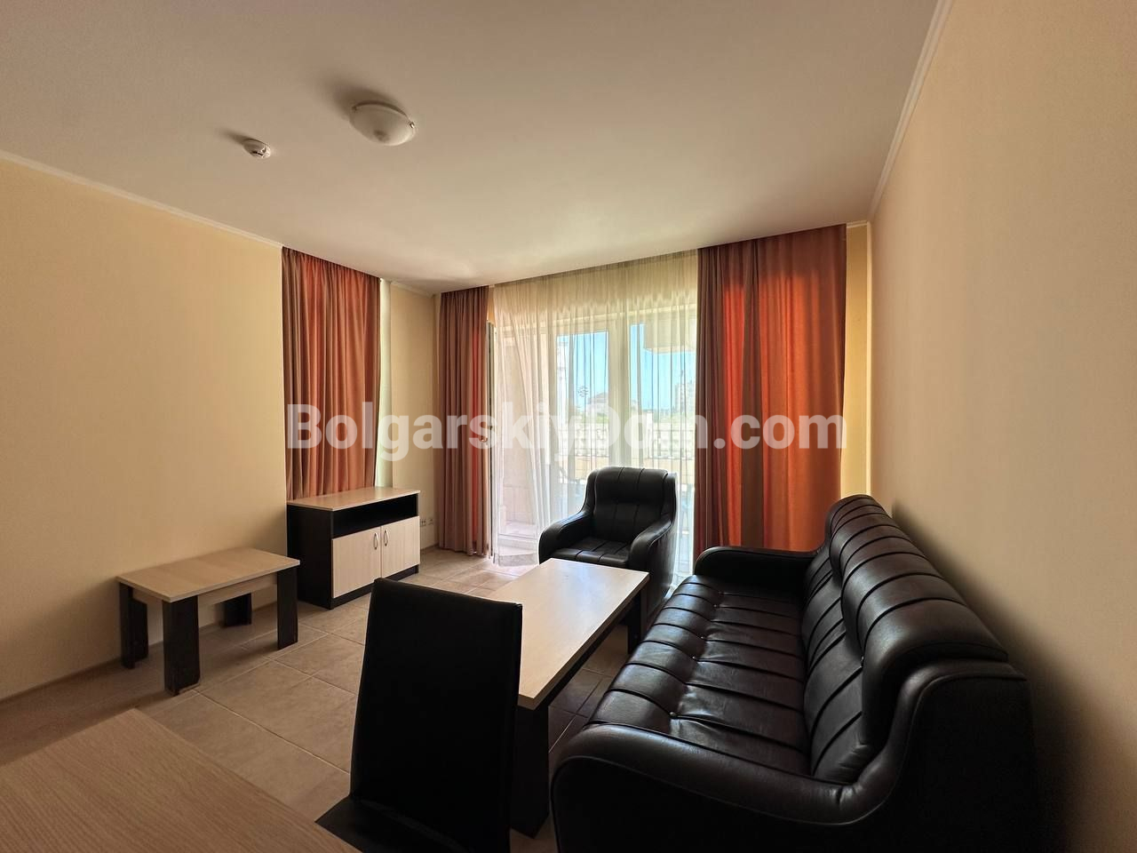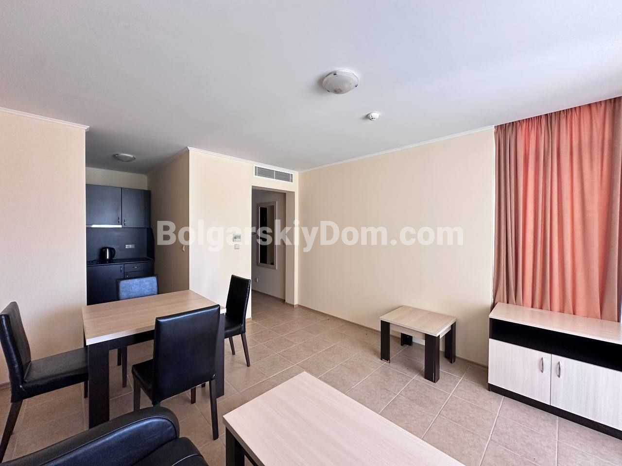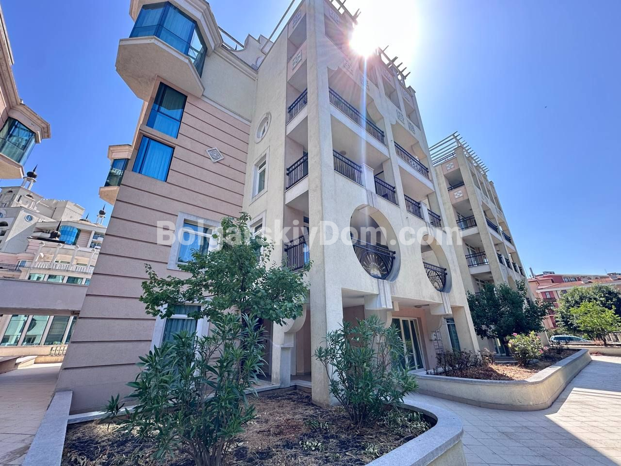 Меблированная двухкомнатная квартира в Сансет Резорт, всего в пятидесяти метрах от моря! 76 метров квадратных, первый этаж из пяти. В санузле ванна, спальня с новым комплектом мебели автономная, в гостиной удобный кухонный блок в нише и зона отдыха. Остается мебель и часть кухонной техники, ремонт в хорошем состоянии.